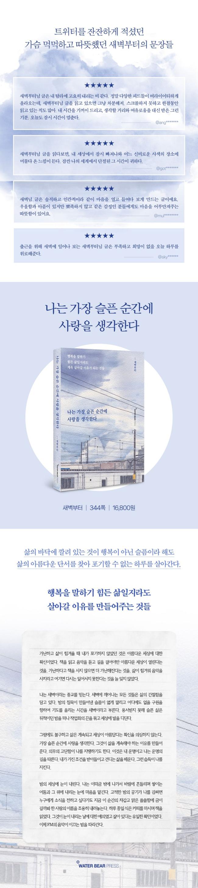 ÀÌ Ã¥Àº ±×·± ÀÛ°¡°¡ °æºñ ÀÏÀ» ½ÃÀÛÇÑ 2021³â 1¿ùºÎÅÍ 2024³â 4¿ù±îÁöÀÇ Æ®ÀÀ» ¸ð¾Ò´Ù. ÀÛ°¡ÀÇ Æ®À ¹Ø¿¡´Â ½½ÇÄÀÌ ±ò·Á ÀÖÁö¸¸, ±× ½½ÇÄÀº »î¿¡ ´ëÇÑ ±àÁ¤À¸·Î À̾îÁø´Ù. Àú ¸Ö¸® Á¸ÀçÇÏ´ÂÁö ¾Ë ¼ö ¾ø´Â ¼º°ø°ú Çູ¿¡ ´ëÇÑ ÁýÂøÀ» ³»·Á³õ°í ÇöÀçÀÇ ±â»Ý°ú °¨µ¿¿¡ Ãæ½ÇÇÑ´Ù. ±× À̾߱⸦ ¸î °¡Áö ÁÖÁ¦·Î ³ª´©¾ú´Ù. ¶¡ Èê·Á ÀÏÇϰí ÀÚ¿¬°ú »ç¶÷À» ¸¸³ª´Â °æºñ½Ç, ÀÛ°¡°¡ Ưº°ÇÑ ¾ÖÁ¤À» °¡Áø ºûÀÌ µéÁö ¾ÊÀº ¾î½º¸§ÇÑ »õº®, »îÀÇ °¡Àå Å« ±â»ÝÀÎ ¡®»ç¶û¡¯ÀÇ Á᫐ ¾Æ³», »îÀÇ ½½Çİú ¾Æ¸§´Ù¿òÀÇ ¿øÃµÀÎ °¡Á·, »îÀ» °è¼ÓÇÒ ÈûÀÌ µÇ¾îÁÖ´Â À½¾Ç/Ã¥/Ä¿ÇÇ. ´Ù¾çÇÑ ÁÖÁ¦·Î ¾´ ±ÛµéÀº °÷°÷¿¡¼ Àд À̸¦ ¸ØÃç ¼¼¿ì¸ç ´Ù¾çÇÑ »ý°¢°Å¸®¿Í ¸¶À½ÀÇ ¿©À¯¸¦ Á¦°øÇÑ´Ù.