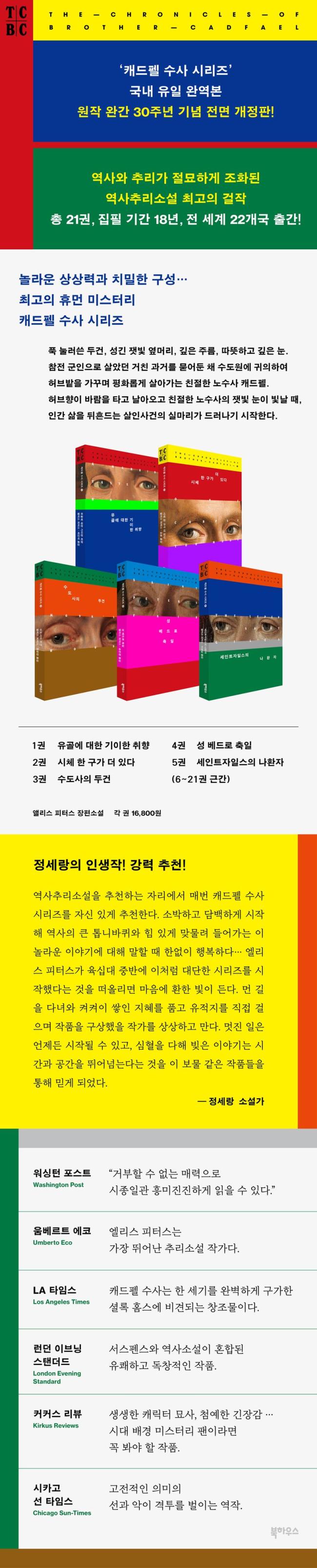 ¡®Ä³µåÆç ¼ö»ç ½Ã¸®Áî(The Chronicles of Brother Cadfael)¡¯´Â ³î¶ó¿î »ó»ó·Â°ú Ä¡¹ÐÇÑ ±¸¼º, »ý»ýÇÑ Ä³¸¯ÅÍ, ¼±°ú ¾Ç, »î°ú Á×À½, ½Å°ú Àΰ£ µî Àΰ£»ç ÃÖ°í ³Á¦¿¡ ´ëÇÑ ±íÀÌ Àִ öÇÐÀÌ ³ì¾Æ ÀÖ´Â ¿ª»çÃ߸®¼Ò¼³ÀÇ Å¬·¡½ÄÀÌ´Ù.