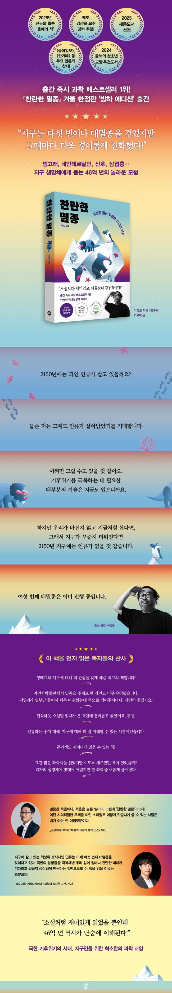 Áö±¸ÀÇ »ý¸íÀº ´Ù¼¸ ¹øÀ̳ª ´ë¸êÁ¾ÀÇ À§±â¸¦ ¸Â¾ÒÁö¸¸ ±×¶§¸¶´Ù À§±â¸¦ ±Øº¹ÇÏ°í ´õ¿í Âù¶õÇÏ°Ô ÁøÈÇß´Ù. ÀÌ Ã¥À» ÅëÇØ¼ Áö±¸¿Í »ý¸í°ú ÀηùÀÇ ³î¶ó¿î ¿ª»ç¸¦ ¸¶ÁÖÇϸç, ´Ù°¡¿Ã ¹Ì·¡¸¦ µÎ·Á¿öÇϱ⺸´Ù Èï¹Ì·Ó°Ô »ó»óÇÏ´Â Áñ°Å¿òÀ» °æÇèÇÒ °ÍÀÌ´Ù.