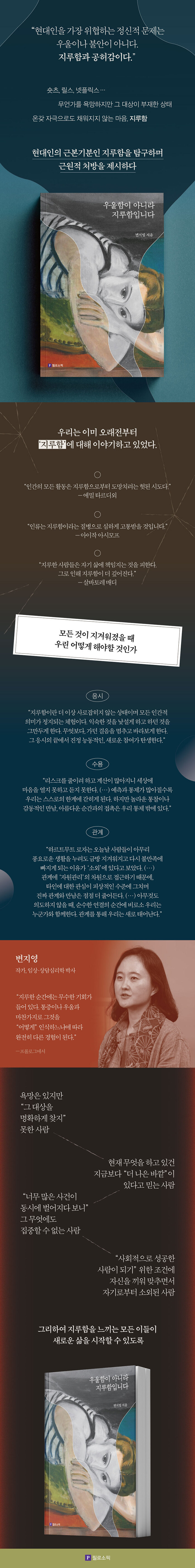 Áö±ÝÀÇ »î¿¡ ¸¸Á·ÇÏÁö ¸øÇÒ ¶§, ¸¶À½ÀÌ ¾îµð¿¡µµ ´êÁö ¸øÇϰí Çã°øÀ» ¶°µ¹ ¶§ ¿ì¸®´Â ¡®¿ì¿ïÁõÀΰ¡?¡¯ »ý°¢Çϱ⠽±´Ù. ±×·¯³ª ÀÌ Ã¥¿¡¼ ÀúÀÚ´Â À̰ÍÀº ¿ì¿ïÇÔÀÌ ¾Æ´Ï¶ó Áö·çÇÔÀ̸ç, Áö·çÇÔÀº ¾ðÁ¦µçÁö ¿ì¸®¸¦ ½½±×¸Ó´Ï ÈÖ°¨´Â ±Ùº»±âºÐÀ̶ó°í ¸»ÇÑ´Ù.