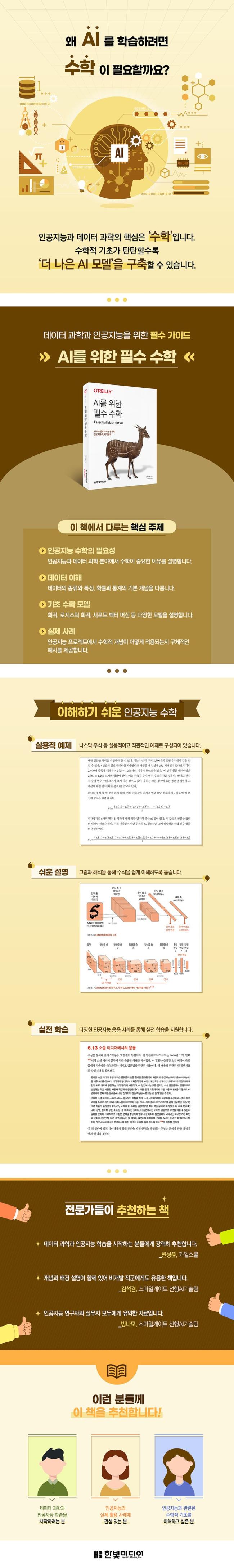 º¹ÀâÇÑ °ø½Ä°ú ¹æ´ëÇÑ ¾ç¿¡ ¾ÐµµµÇ¾î ¼öÇÐ °øºÎ¸¦ Æ÷±âÇÏ´Â »ç¶÷µéÀ» À§ÇØ ¸¸µé¾îÁ³´Ù. AI ½Ã½ºÅÛ ±¸Ãà¿¡ ÇʼöÀûÀÎ Åë°èÇÐ, ¼±Çü ´ë¼öÇÐ, ¹ÌÀûºÐÇÐ µî ±âº» ¼öÇÐ °³³äÀ» ½±°Ô Ç®¾î³»¾î, ÀÌÇØÇϱ⠽±°Ô ¼³¸íÇÑ´Ù. ¾î·Á¿î Á¤¸®³ª Áõ¸í, ÄÚµùÀº ÃÖ¼ÒÈÇϰí, °¢ °³³äÀÌ AI ¾ÖÇø®ÄÉÀ̼ǿ¡ ¾î¶»°Ô Àû¿ëµÇ´ÂÁö¸¦ ½ÇÁ¦ »ç·Ê¸¦ ÅëÇØ º¸¿©ÁØ´Ù. À̸¦ ÅëÇØ ¼öÇÐÀû ¼¼ºÎ »çÇ׺¸´Ù´Â ¼öÇÐ °³³ä °£ÀÇ °ü°è¿Í ÀüüÀûÀÎ ±×¸²À» ±×¸®´Â µ¥ ÁýÁßÇÒ ¼ö ÀÖµµ·Ï ÇÑ´Ù.