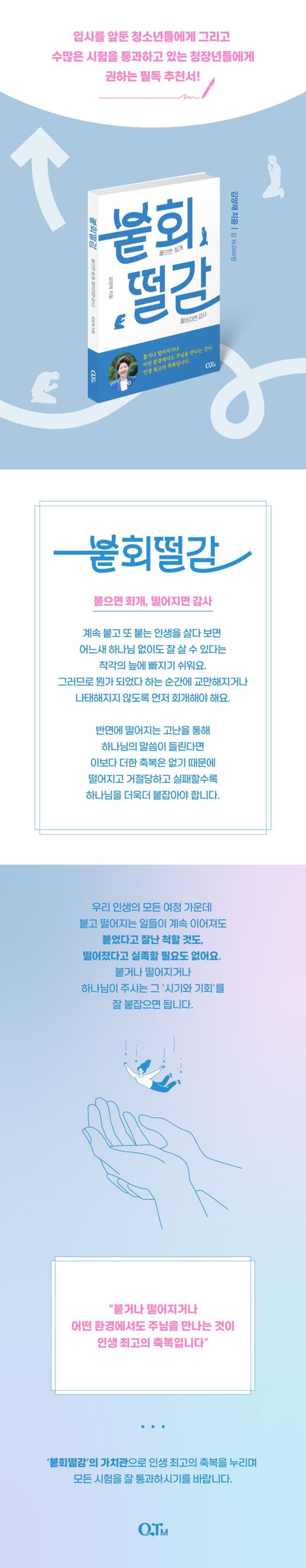 ÀúÀÚ´Â °è¼Ó ºÙ°í ¶Ç ºÙ´Â ÀλýÀ» »ì´Ù º¸¸é ¾î´À»õ Çϳª´Ô ¾øÀ̵µ Àß »ì ¼ö ÀÖ´Ù´Â Âø°¢ÀÇ ´Ë¿¡ ºüÁö±â ½±´Ù°í ¸»ÇÕ´Ï´Ù. ±×·¯¹Ç·Î ¹º°¡ µÇ¾ú´Ù ÇÏ´Â ¼ø°£¿¡ ±³¸¸ÇØÁö°Å³ª ³ªÅÂÇØÁöÁö ¾Êµµ·Ï ¸ÕÀú ȸ°³ÇØ¾ß ÇÑ´Ù´Â °ÍÀÔ´Ï´Ù. ¹Ý¸é¿¡ ¶³¾îÁö°í °ÅÀý´çÇÏ°í ½ÇÆÐÇÒ¼ö·Ï Çϳª´ÔÀ» ´õ¿í´õ ºÙÀâÀ¸¶ó°í ¸»ÇÕ´Ï´Ù. ¶³¾îÁö´Â °í³À» ÅëÇØ Çϳª´ÔÀÇ ¸»¾¸ÀÌ µé¸°´Ù¸é À̺¸´Ù ´õÇÑ ÃູÀº ¾ø±â ¶§¹®ÀÔ´Ï´Ù. ÀÌ Ã¥Àº ÀúÀÚÀÇ ÀÌ·¯ÇÑ ¡®ºÙȸ¶³°¨¡¯ ¼³±³ ¸Þ½ÃÁö¿Í ºÒȸ¶³°¨ÀÇ °¡Ä¡°üÀ¸·Î »ì¾Æ ³½ ¿ì¸®µé±³È¸ ¼ºµµµéÀÇ À̾߱⸦ ÇÔ²² ´ã°í ÀÖ½À´Ï´Ù. ±×·¯¹Ç·Î ºñ´Ü ÀԽø¦ ¾ÕµÐ û¼Ò³â»Ó ¾Æ´Ï¶ó ¼ö¸¹Àº ½ÃÇèÀ» Åë°úÇϰí Àִ ûÀå³âµé¿¡°Ôµµ Àϵ¶À» ±ÇÇÕ´Ï´Ù.
