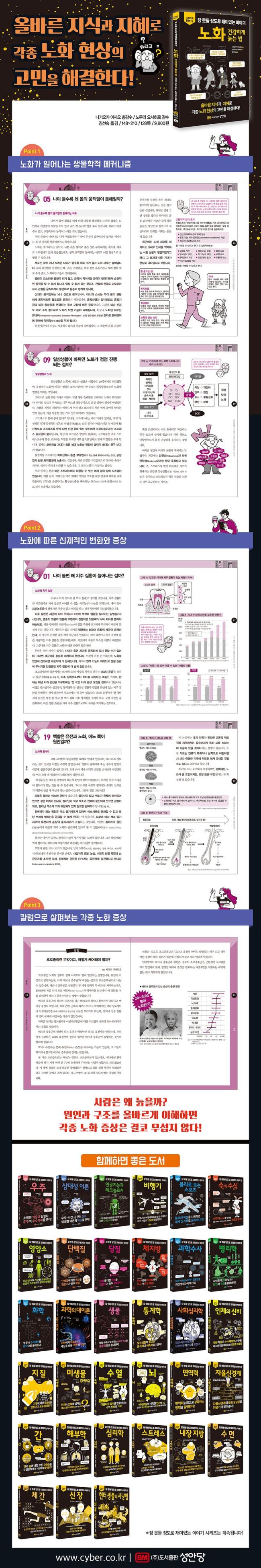 ³ªÀ̰¡ µé¸é¼ ½Åü¿¡ ³ªÅ¸³ª´Â º¯È¸¦ ÁßÁ¡ÀûÀ¸·Î ´Ù·ç¸ç, ³ëÈ¿¡ ´ëÇÑ ½ÉÃþÀûÀÎ Á¤º¸¸¦ Á¦°øÇÑ´Ù. 1Àå¿¡¼´Â ³ëȰ¡ ÀϾ´Â »ý¹°ÇÐÀû ¸ÞÄ¿´ÏÁòÀ» ´Ù·ç°í, ³ëȸ¦ °úÇÐÀûÀ¸·Î ÀÌÇØÇϱâ À§ÇÑ ´Ù¾çÇÑ ¿¬±¸ °á°ú¿Í ÀÌ·ÐÀ» ¼Ò°³ÇÑ´Ù. 2Àå¿¡¼´Â Áß°í·ÉÃþÀ» Áß½ÉÀ¸·Î ³ëÈ¿¡ µû¶ó ³ªÅ¸³ª´Â ±¸Ã¼ÀûÀÎ ½Åü º¯È¿Í Áõ»óÀ» ¼³¸íÇÑ´Ù. ¶ÇÇÑ, ³ëÈ·Î ÀÎÇØ ½±°Ô °É¸± ¼ö ÀÖ´Â Áúº´¿¡ ´ëÇØ¼µµ ÀÚ¼¼È÷ ´Ù·é´Ù.