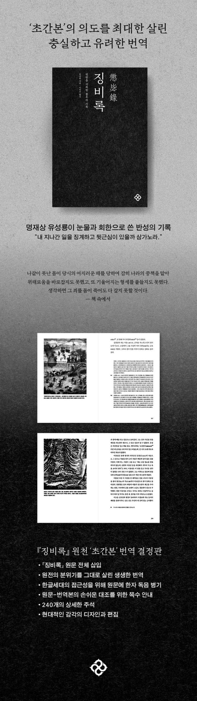 2024³â °³Á¤ÆÇ ¡ºÂ¡ºñ·Ï¡»Àº Çö´ë µ¶ÀÚµéÀÇ ÆíÀǸ¦ À§ÇØ 240¿© °³ÀÇ °¢ÁÖ¸¦ µ¡ºÙÀ̰í, ÀÓÁø¿Ö¶õ°ú °ü·ÃµÈ À̹ÌÁöµéÀ» Æ÷ÇÔ½ÃÄÑ ´ç½Ã »óȲÀ» ÆÄ¾ÇÇÒ ¼ö ÀÖ´Â ½Ã°¢ÀûÀÎ ÀڷḦ Æ÷ÇÔÇÑ °ÍÀÌ Å« Ư¡ÀÌ´Ù. ¾Æ¿ï·¯ ÇÑÀÚ ¿ø¹®À» »ðÀÔÇÏ°í ¸ðµç ÇÑÀÚ¿¡ µ¶À½À» ´Þ¾Æ ¹ø¿ªÀÇ Ãæ½Çµµ¸¦ ³ô¿´´Ù. ÇöÀç±îÁö ÀüÇØÁö´Â ¡ºÂ¡ºñ·Ï¡»Àº Ãʰ£º»°ú °£ÇົÀ¸·Î 16±Çº», 2±Çº»ÀÌ ³²¾Æ ÀÖ´Ù. ±×Áß¿¡¼ ÀÌ Ã¥Àº °¡Àå ¿øÃµÀÌ µÇ´Â Ãʰ£º» ¡ºÂ¡ºñ·Ï¡»À» ¹ø¿ªÀÇ ¿øÀüÀ¸·Î »ï¾Ò´Ù. ´Ù¸¸ ÀÌ Ã¥ÀÇ ¼¹®Àº Ãʺ»¿¡ ÇØ´ç ºÎºÐÀÌ ¾ø¾îÁø Å¿À¸·Î °£ÇົÀÇ ¼¹®À» ÅÃÇß´Ù. ¶ÇÇÑ ¿ªÀÚÀÇ ÇØÁ¦¸¦ ¾Õ¿¡ µ¡ºÙ¿© ¡ºÂ¡ºñ·Ï¡»À» óÀ½ Á¢ÇÏ´Â µ¶Àڵ鿡°Ô Ã¥ÀÇ ¹è°æ°ú ÀÇÀÇ µîÀ» ¼³¸íÇß´Ù.
