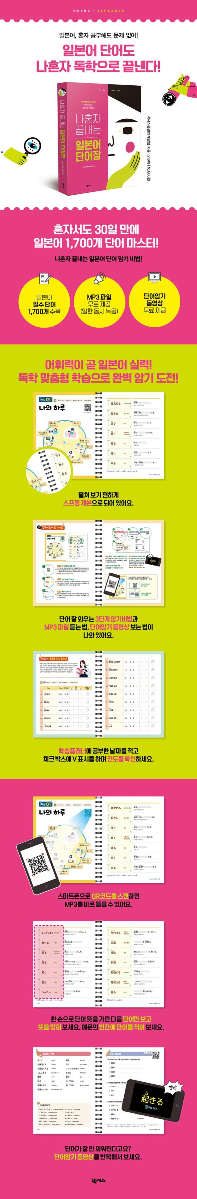 ¡º³ªÈ¥ÀÚ ³¡³»´Â ÀϺ»¾î ´Ü¾îÀå¡»Àº ÀϺ»¾î¸¦ µ¶ÇÐÀ¸·Î °øºÎÇÏ·Á´Â ÇнÀÀÚµéÀÌ È¥ÀÚ¼ 30ÀÏ ¸¸¿¡ ´Ü¾î¸¦ ¾Ï±âÇÒ ¼ö ÀÖµµ·Ï ±¸¼ºÇß´Ù. ±âÃÊ ´Ü¾î 600¿© °³¸¦ Æ÷ÇÔÇÏ¿© ÀÏ»ó»ýȰ¿¡¼ Ȱ¿ëµµ°¡ ³ôÀº Çʼö ´Ü¾î 1,700¿© °³¸¦ ¼ö·ÏÇϰí ÀÖ´Ù. ½º¸¶Æ®ÆùÀ¸·Î Ã¥ ¼ÓÀÇ QRÄڵ带 ½ºÄµÇÏ¸é ¿ø¾î¹Î MP3 À½¿ø°ú ´Ü¾î¾Ï±â µ¿¿µ»óÀ» ¹Ù·Î Àç»ýÇÒ ¼ö ÀÖ°í, ³Ø¼½º ȨÆäÀÌÁö(nexusbook.com)¿¡¼µµ ¹«·á·Î ´Ù¿î·ÎµåÇÒ ¼ö ÀÖ´Ù.