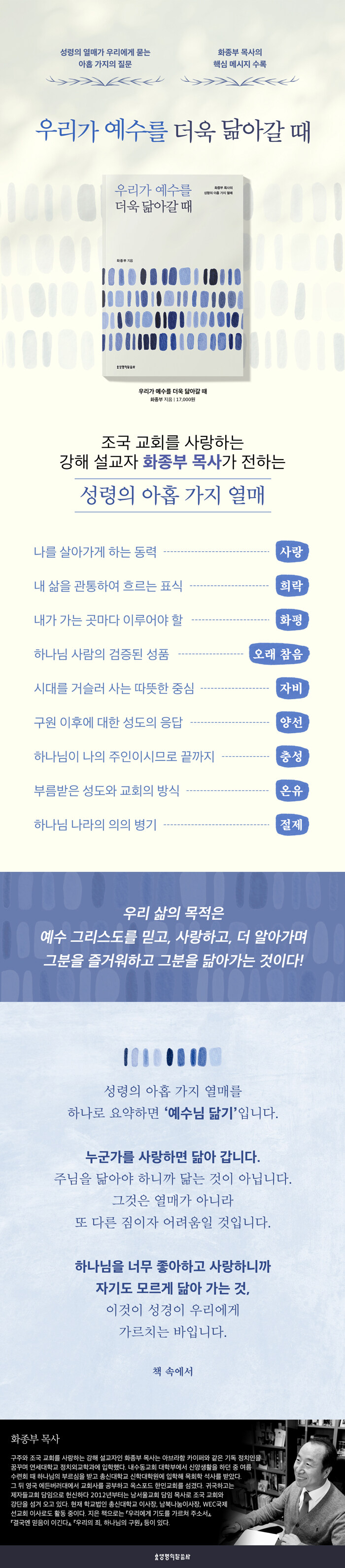 ¿ÀÁ÷ ¼º°æ º»¹®¿¡ Ãæ½ÇÇÑ °ÇØ ¼³±³ÀÚ ÈÁ¾ºÎ ¸ñ»ç°¡ ¸»¾¸ ¾Õ¿¡¼ ¿À·¡ ÃµÂøÇØ ¿Â ³¡¿¡ Ç®¾î³½ ¡®¼º·ÉÀÇ ¾ÆÈ© °¡Áö ¿¸Å¡¯°¡ Ã¥À¸·Î ³ª¿Ô´Ù. ÈÁ¾ºÎ ¸ñ»ç´Â ¾î´À ¶§º¸´Ù ¿ÀÁ÷ ¼º°æ°ú º¹À½¿¡ Ãæ½ÇÇÑ ±âµ¶±³°¡ ¿ä±¸µÇ´Â ÀÌ ½Ã´ë¿¡ ¡®¼º·ÉÀÇ ¾ÆÈ© °¡Áö ¿¸Å¡¯¶ó´Â ·»Áî·Î ¾î¶»°Ô ¿ì¸®°¡ ¿¹¼ö´ÔÀ» ´à¾Æ°¥ ¼ö ÀÖÀ»Áö »ó°íÇÏ¿© ±×°¡ »ç¶ûÇÏ´Â Á¶±¹ ±³È¸ ¾Õ¿¡ ÇÑ ±ÇÀÇ Ã¥À¸·Î ³»³õ´Â´Ù.