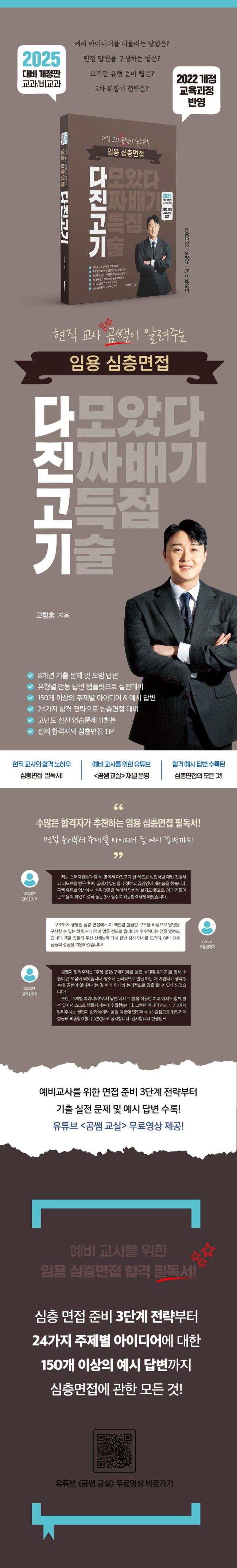 ½ÃÇè ¹®Á¦°¡ °ø°³µÇ´Â 1Â÷ ½ÃÇè°ú´Â ´Þ¸®, 2Â÷ ½ÃÇèÀº °æÇèÀÚµéÀÇ º¹±â¿¡¸¸ ÀÇÁ¸Çؼ °ü·ÃµÈ Á¤º¸¿Í ÀÚ·á°¡ ±¸Çϱâ Èûµé°í, ÁÖº¯¿¡¼´Â ¹ú½á ¸ÅÀÏ ÀϾ¼ ¼ö¾÷ ½Ç¿¬°ú ½ÉÃþ ¸éÁ¢ ¿¬½ÀÀ» Çϰí ÀÖÁÒ. µÚóÁö´Â ±âºÐÀÌ µå´Â ¿ÍÁß¿¡ ¼³»ó°¡»óÀ¸·Î ¸éÁ¢ ¹®Á¦´Â µÎ·ç¹¶¼úÇØ¼ ´äº¯¿¡ ´ëÇÑ °¥ÇǸ¦ ÀâÁö ¸øÇß½À´Ï´Ù. Âü ´ä´äÇß½À´Ï´Ù. ¼ö¾÷ ½Ç¿¬ÀÌ¾ß ¹¹, Áö±Ý±îÁö Çб³³ª Çпø¿¡ ¿À°¡¸é¼ ¿©·¯ ¹æ½ÄÀÇ ¼ö¾÷À» º¸¾Æ¿ÔÀ¸´Ï ¾Ë ¹ýµµ Çѵ¥, ¸éÁ¢À̶ó´Ï. °Þ¾îº¸Áö ¸øÇÑ ¹æ½ÄÀÇ ½ÃÇè¿¡ Âü ³¸¼³¾ú½À´Ï´Ù. ¿©·¯ºÐµéµµ ¾Æ¸¶ Àú¿Í ºñ½ÁÇÑ °¨Á¤ÀÌ µå½ÃÁö ¾ÊÀ»±î »ý°¢ÇÕ´Ï´Ù. Àú¸¸ÀÇ ÇÕ°Ý ³ëÇϿ츦 ¸¹Àº ¿¹ºñ ±³»çºÐµé°ú ³ª´©°í ½Í½À´Ï´Ù. ±×µ¿¾È ³ë·ÂÀÇ °úÁ¤ÀÌ ¾ó¸¶³ª °íÅ뽺·¯¿îÁö ¾Ë±â¿¡, ¾ó¸¶³ª °£ÀýÇÑÁö ¾Ë±â¿¡ Á¶±ÝÀ̳ª¸¶ µµ¿òÀÌ µÇ°í ½Í¾ú½À´Ï´Ù. ÀÌ·¯ÇÑ ¸¶À½À¸·Î ÀúÀÇ ¼öÇè½ÃÀý Áغñ °úÁ¤°ú ÇöÁ÷¿¡¼ÀÇ °æÇèÀ» ³ì¿©³»¾î ÀÌ Ã¥À» Ãâ°£ÇÕ´Ï´Ù.