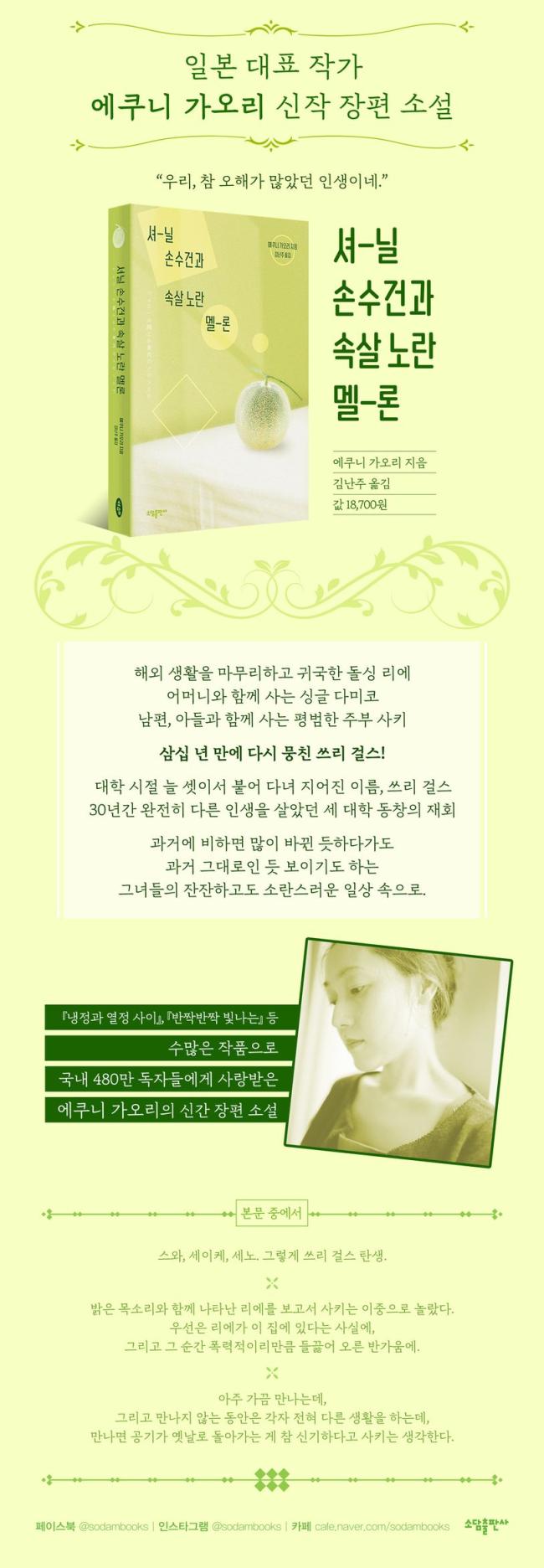 û¾ÆÇÑ ¹®Ã¼¿Í ¼¼·ÃµÈ °¨¼º ȹýÀ¸·Î »ç¶û¹Þ´Â ÀÛ°¡ÀÎ ¿¡Äí´Ï °¡¿À¸®´Â 1989³â ¡º409 ·¡µåŬ¸®ÇÁ¡»·Î Æä¹Ì³ª»óÀ» ¼ö»óÇß°í, µ¿ÈºÎÅÍ ¼Ò¼³, ¿¡¼¼À̱îÁö Æø³ÐÀº ÁýÇÊ È°µ¿À» ÇØ ³ª°¡¸é¼ Âü½ÅÇÑ °¨°¢°ú ¼¼·Ã¹Ì¸¦ °âºñÇÑ µ¶ÀÚÀûÀÎ ÀÛǰ ¼¼°è¸¦ ±¸ÃàÇϰí ÀÖ´Ù. ¡º¹Ý¦¹Ý¦ ºû³ª´Â¡»À¸·Î ¹«¶ó»çŰ½ÃŰºÎ ¹®Çлó(1992), ¡º³ªÀÇ ÀÛÀº »õ¡»·Î ·Îº¸³ëÀ̽à ¹®Çлó(1999), ¡º¿ï Áغñ´Â µÇ¾î ÀÖ´Ù¡»·Î ³ª¿ÀŰ»ó(2003), ¡ºÀ⵿»ç´Ï¡»·Î ½Ã¸¶¼¼ ¿¬¾Ö¹®Çлó(2007), ¡ºÇѳ·Àε¥ ¾îµÎ¿î ¹æ¡»À¸·Î Áß¾Ó°ø·Ð¹®¿¹»ó(2010)À» ¹Þ¾Ò´Ù. ÀϺ» ¹®ÇÐ ÃÖ°íÀÇ °¨¼º ÀÛ°¡·Î ºÒ¸®´Â ±×³à´Â ¡º³ÃÁ¤°ú ¿Á¤ »çÀÌ Rosso¡», ¡ºµµÄì Ÿ¿ö¡», ¡º¾ðÁ¨°¡ ±â¾ï¿¡¼ »ç¶óÁø´Ù ÇØµµ¡», ¡ºÁÂ¾È 1¡¤2¡», ¡º´ÞÄÞÇÑ ÀÛÀº °ÅÁþ¸»¡», ¡º¼Ò¶õÇÑ º¸Å볯¡», ¡ººÎµå·¯¿î ¾ç»óÃß¡», ¡º¼ö¹Ú Çâ±â¡», ¡ºÇÏ´À´ÔÀÇ º¸Æ®¡», ¡º¿ì´Â ¾î¸¥¡», ¡º¿ïÁö ¾Ê´Â ¾ÆÀÌ¡», ¡ºµî µÚÀÇ ±â¾ï¡», ¡ºÆ÷¿Ë ȤÀº ¶óÀ̽º¿¡´Â ¼Ò±ÝÀ»¡», ¡ºÁñ°Ì°Ô »ìÀÚ, °í¹ÎÇÏÁö ¸»°í¡», ¡º¹ú°Å¼þÀ̵须, ¡ºÀú¹° µí Àú¹°Áö ¾Ê´Â¡», ¡º°³¿Í Çϸð´ÏÄ«¡», ¡ºº°»çÅÁ ³»¸®´Â ¹ã¡» µîÀ¸·Î Çѱ¹ÀÇ ¸¹Àº µ¶ÀÚµéÀ» »ç·ÎÀâ°í ÀÖ´Ù.