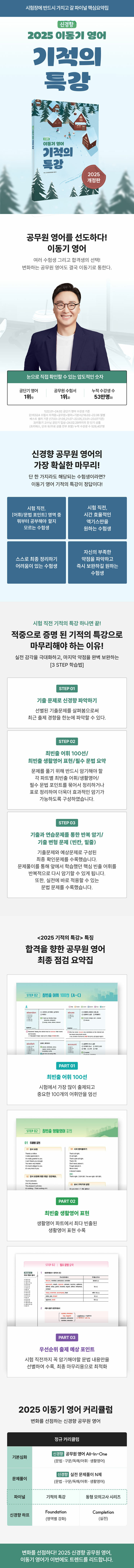 <2025 ½Å°æÇâ À̵¿±â ¿µ¾î ±âÀûÀÇ Æ¯°>Àº ÃâÁ¦±âÁ¶ Àüȯ¿¡ µû¶ó ¹Ù²î´Â ÃâÁ¦ °æÇâÀ» ºÐ¼®ÇÏ¿© ±×µ¿¾È ÃâÁ¦ ºóµµ°¡ ³ô¾Ò°í ¾ÕÀ¸·Î ½ÃÇè¿¡ ÃâÁ¦°¡ À¯·ÂÇÑ ÃÖºóÃâ ¹× ÃâÁ¦ ¿¹»ó ¾îÈÖ, »ýȰ¿µ¾î Ç¥Çö, ¹®¹ý Æ÷ÀÎÆ®¸¦ ¾ÐÃà Á¤¸®ÇÑ ÆÄÀ̳ΠÇÙ½É ¿ä¾àÁýÀÌ´Ù. [±âÃâ ¹®Á¦·Î ½Å°æÇâ ÆÄ¾ÇÇϱâ], [ÃÖºóÃâ ¾îÈÖ/»ýȰ¿µ¾î Ç¥Çö, Çʼö ¹®¹ý ÇнÀ], [±âÃâ°ú ¿¬½À¹®Á¦¸¦ ÅëÇÑ ¹Ýº¹ÇнÀ]À¸·Î À̾îÁö´Â ÀÌÇØ ¡æ ¾Ï±â ¡æ ¹®Á¦Ç®ÀÌÀÇ ´Ü°èº° ±¸¼ºÀ¸·Î ü°èÀûÀÎ ÇнÀ°ú ¾Ï±â¸¦ ÇÒ ¼ö ÀÖµµ·Ï ÇÏ¿´´Ù. ¾îÈÖ¿Í Çʼö ¹®¹ý »çÇ×À» Ç¥ ÇüÅ·Π±¸¼ºÇÏ¿© ÇÑ ´«¿¡ ÆÄ¾ÇÇÏ¿© È¿À²ÀûÀ¸·Î ¾Ï±âÇÒ ¼ö ÀÖµµ·Ï ÇßÀ¸¸ç, ÈÞ´ë°¡ ¿ëÀÌÇÑ ºÐ·®°ú Å©±â·Î ½ÃÇèÀå¿¡¼±îÁö ¾Ï±â¿Í È®ÀÎ ÇнÀÀÌ °¡´ÉÇÏ°Ô ÇÏ¿´´Ù.