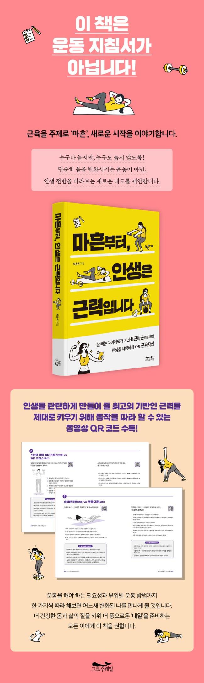 ÀÌ Ã¥Àº ´Ü¼øÈ÷ ¸öÀ» º¯È½ÃŰ´Â ¿îµ¿ÀÌ ¾Æ´Ñ, Àλý Àü¹ÝÀ» ¹Ù¶óº¸´Â »õ·Î¿î ŵµ¸¦ Á¦¾ÈÇÑ´Ù. Àλý ÃÖ°íÀÇ ÅºÅºÇÑ ±â¹ÝÀÎ ±Ù·ÂÀÌ ¿ì¸®ÀÇ »îÀ» ¾î¶»°Ô º¯È½ÃŰ´ÂÁö, ¿îµ¿À» ÇØ¾ß ÇÏ´Â Çʿ伺¿¡ ´ëÇØ »ì¶ãÇÏ°Ô À̾߱âÇÑ´Ù. µÎ ¾ÆÀÌÀÇ ¾ö¸¶, °ø±³À°À» Ã¥ÀÓÁö°í ÀÖ´Â ±³»çÀÎ ÀúÀÚ´Â ¿îµ¿À» »ç¶ûÇÏ´Â °Í¿¡ ±×Ä¡Áö ¾Ê°í, ±× °¡Ä¡¸¦ ÁÖº¯¿¡ ÀüÇÏ¸ç ¸ðµÎ°¡ °Ç°ÇÏ°Ô »ç´Â ÀÏ»óÀ» ²Þ²Û´Ù. ´õ °Ç°ÇÑ ¸ö°ú »îÀÇ ÁúÀ» Ű¿ö ´õ dz¿ä·Î¿î ¡®³»ÀÏ¡¯À» ÁغñÇÏ´Â ¸ðµç ÀÌ¿¡°Ô ÀÌ Ã¥À» ±ÇÇÑ´Ù.
