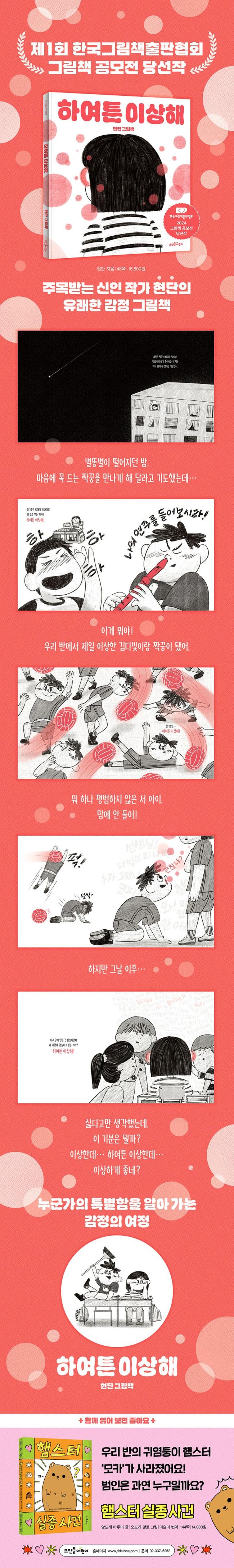 Á¦1ȸ Çѱ¹±×¸²Ã¥ÃâÆÇÇùȸ ±×¸²Ã¥ °ø¸ðÀü¿¡¼ ³ôÀº Æò°¡¸¦ ¹ÞÀ¸¸ç ´ç¼±µÈ ¡¶ÇÏ¿©Æ° ÀÌ»óÇØ¡·´Â ´Ü¼øÇÑ ¿ìÁ¤À̳ª ù»ç¶û À̾߱Ⱑ ¾Æ´Ï´Ù. ÆäÀÌÁö¸¦ ³Ñ±æ ¶§¸¶´Ù ¡®ÇÏ¿©Æ° ÀÌ»óÇØ¡¯¶ó´Â ´ë»ç°¡ ¹Ýº¹µÇÁö¸¸, ÁÖÀΰøÀÇ ¸ð½ÀÀº °è¼Ó º¯ÈÇÑ´Ù. ½È¾îÇÏ´ø Ä£±¸¿Í ¦²áÀ¸·Î Áö³»¸é¼ ´Þ¶óÁö´Â °ü°è¿Í °¨Á¤À» À¯ÄèÇÏ°í ¼¶¼¼ÇÏ°Ô ¹¦»çÇϸç, óÀ½ °Þ±â ¶§¹®¿¡ ¼Åø¾ú´ø °¨Á¤µµ ¾ó¸¶µçÁö ¼ºÀåÇÒ ¼ö ÀÖ´Ù´Â ±íÀº ¸Þ½ÃÁö¸¦ ÀüÇÑ´Ù. ¾î¸°À̸¦ ±³À°ÇÏ´Â ÀÚ¸®¿¡ ÀÖ´Â µ¶ÀÚ¶ó¸é °¨Á¤¿¡ °üÇØ °¡¸£Ä¥ ¶§ ÀÌ Ã¥À» Ȱ¿ëÇØ º¸±æ ±ÇÇÑ´Ù. Áö±Ý µå´Â °¨Á¤Àº Âß ¸Ó¹«¸£´Â °Ô ¾Æ´Ï¶ó ¾ó¸¶µçÁö ¹Ù²ï´Ù´Â Á¡, ±×¸®°í °¨Á¤À» ±àÁ¤ÀûÀÎ ¹æÇâÀ¸·Î ¼ºÀå½ÃŰ´Â °ÍÀÌ ¸Å¿ì Áß¿äÇÏ´Ù´Â »ç½ÇÀ» ÀÚ¿¬½º·´°Ô Àϱú¿ï ¼ö ÀÖ´Ù. ¶ÇÇÑ ÀÌ ÀÛǰÀÇ ¸Þ½ÃÁö¸¦ Ä£±¸ °ü°è ¿Ü¿¡ ÀÏ»ó ¼Ó ¸ðµç °ü°è¿¡ Àû¿ëÇÏ¿©, ³¸¼³°í º¹ÀâÇÑ Å¸ÀΣ¿ °ü°è£¿ °¨Á¤À» ÀÌÇØÇÏ°í ¹Þ¾ÆµéÀÌ´Â µ¥ µµ¿òÀÌ µÉ °ÍÀÌ´Ù.