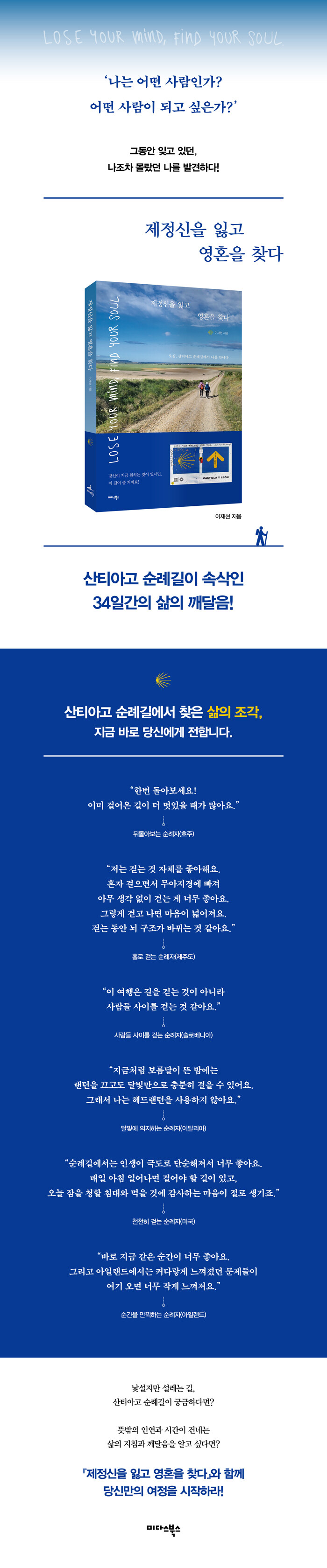 ¡ºÁ¦Á¤½ÅÀ» ÀÒ°í ¿µÈ¥À» ã´Ù¡»´Â »êƼ¾Æ°í ¼ø·Ê±æÀ̶ó´Â »õ·Î¿î ¼¼°è·ÎºÎÅÍ ¾òÀº ÀØÀ» ¼ö ¾ø´Â °æÇèµéÀ» ´ãÀº ¼ÒÁßÇÑ ±â·ÏÀÌ´Ù. ¶ÇÇÑ, 34ÀÏ µ¿¾È 800km¸¦ °È´Â ¿©Á¤¿¡¼ ¶°¿À¸¥ »ý°¢µé, ±× ±æ À§¿¡¼ ¸ÎÀº ¼ÒÁßÇÑ Àο¬µéµµ ÇÔ²² ¸¸³ªº¼ ¼ö ÀÖ´Ù.