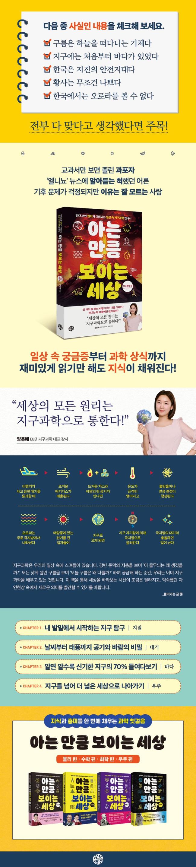 ¡®¿Ö ÇØ¸¶´Ù °Ü¿ïÀÌ Á¡Á¡ ´õ µû¶æÇØÁö´Â °É±î?¡¯, ¡®À帶´Â ¿Ö ¿©¸§¿¡¸¸ ¿Ã±î?¡¯, ¡®Æ¯Á¤ Áö¿ª¿¡¼ ÁöÁøÀÌ ÀÚÁÖ ¹ß»ýÇÏ´Â ÀÌÀ¯´Â ¹»±î?¡¯ ÀÌ·± Áú¹®µéÀº ´Ü¼øÇÑ È£±â½É¿¡¼ ºñ·ÔµÈ °Í °°Áö¸¸, ±× ´äÀ» µû¶ó°¡´Ù º¸¸é ¸ðµÎ Áö±¸°úÇаú ¿¬°áµÈ´Ù. ¿ì¸®°¡ »ç´Â ¶¥ÀÌ ¸¸µé¾îÁø °úÁ¤, ´ë±âÀÇ È帧°ú ±âÈÄ º¯È, ¹Ù´ÙÀÇ ¿òÁ÷ÀÓ°ú ¿ìÁÖÀÇ ½Åºñ±îÁö ¼¼»óÀ» ¿òÁ÷ÀÌ´Â ¿ø¸®µéÀº ¼·Î ¸Â¹°·Á ÀÖ´Ù.