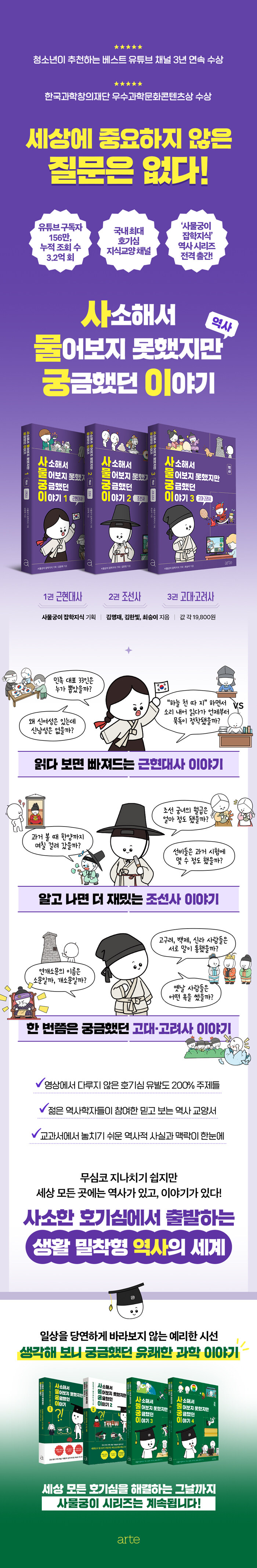 ¡°ÀÇ¿ ÅõÀï¿¡ »ç¿ëµÈ ÆøÅºÀº ´©°¡ ¸¸µé¾úÀ»±î?¡± ¡°½ÅºÐÁ¦ ÆóÁö ÀÌÈÄ Ãµ´ë¹Þ´ø ¹éÁ¤Àº ¾î¶² »îÀ» »ì¾ÒÀ»±î?¡± ¡°¿Ö ½Å¿©¼ºÀº Àִµ¥ ½Å³²¼ºÀº ¾øÀ»±î?¡± »ç¼ÒÇÑ ±Ã±ÝÁõ¿¡ ´ã±ä À§´ëÇÑ Áö½ÄÀ» ¾Ö´Ï¸ÞÀ̼ÇÀ¸·Î Ç®¾î³»´Â Àαâ Áö½Ä ä³Î ¡®»ç¹°±ÃÀÌ ÀâÇÐÁö½Ä¡¯ÀÇ ¿ª»ç ½Ã¸®Áî 1, 2, 3±ÇÀÌ µ¿½Ã Ãâ°£µÇ¾ú´Ù. À¯Æ©¹ö ¡®»ç¹°±ÃÀÌ¡¯ÀÇ ±âȹ°ú °¨¼ö¸¦ ¹ÙÅÁÀ¸·Î, ¼¿ï´ë ±¹»çÇаú¿¡¼ ÇлýµéÀ» °¡¸£Ä¡°í ÀÖ´Â ÀþÀº ¿ª»çÇÐÀÚ 3ÀÎÀÌ ±ÛÀÛ°¡·Î Âü¿©ÇÏ¿© ÀÏ»ó ¼Ó ¿ª»ç ±Ã±ÝÁõÀ» ÇØ°áÇÑ´Ù. ¡®¿ª»ç¡¯ ½Ã¸®Áî 1±ÇÀº Çѱ¹»ç Áß ¡®±ÙÇö´ë»ç¡¯¸¦ µÑ·¯½Ñ Èï¹ÌÁøÁøÇÑ Áú¹®À» ´Ù·é´Ù.