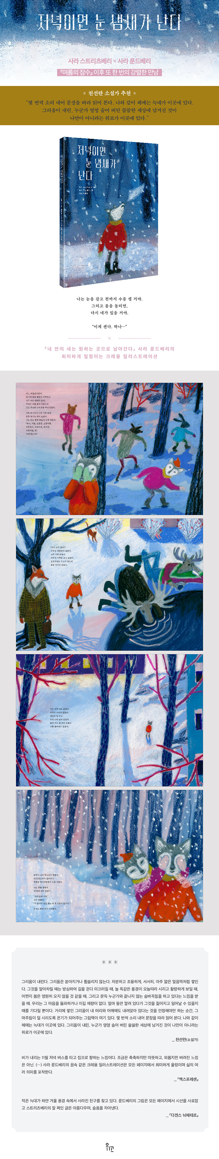 µÎ »ç¶÷ÀÌ ´Ù½Ã ¸¸³ ±×¸²Ã¥ ¡ºÀú³áÀÌ¸é ´« ³¿»õ°¡ ³´Ù¡»´Â ÇѰܿï õÁøÇÑ ¼û¹Ù²ÀÁú ³îÀ̸¦ ÅëÇØ »ó½Ç°ú ±×¸®¿òÀ» ±×·Á³»´Â µ¿½Ã¿¡, »ó½ÇÀÇ °úÁ¤¿¡ ÀÖÀ» ¶§ ºñ·Î¼Ò º¸ÀÌ´Â »îÀÇ ¼û°ÜÁø Àǹ̵éÀ» ´ã¾Æ³»°í ÀÖ´Ù. »ç¶ó ½ºÆ®¸®Ã÷º£¸®´Â »ó½Ç ¼Ó¿¡¼µµ »îÀº °è¼ÓµÇ¸ç, ¹«¾ð°¡¸¦ ã°í ÀÖÀ» ¶§ ³¡³» ±×°ÍÀ» ã¾Æ³»Áö´Â ¸øÇÒÁö¶óµµ ¿¹»óÄ¡ ¸øÇÑ ´Ù¸¥ °ÍÀ» ¸¸³ª°Ô µÇ±âµµ ÇÑ´Ù´Â °ÍÀ» ÇÔÃàÀûÀ¸·Î Ç¥ÇöÇÑ´Ù. »îÀÇ ¿©·¯ Àå¸éµéÀ» ´«¿¡ ´ã°í ±× ¼û°ÜÁø ÀǹÌÀÇ ÀÏ´ÜÀ» ºÙµå´Â ÀÏÀº »ó½Ç ¼Ó¿¡¼¸¸ ÀϾ´Â ÀÏÀÏÁö ¸ð¸¥´Ù´Â ±ú´ÞÀ½¿¡ Á»Ã³·³ °¡½ÃÁö ¾Ê´Â ¿©¿îÀÌ ³²´Â´Ù.