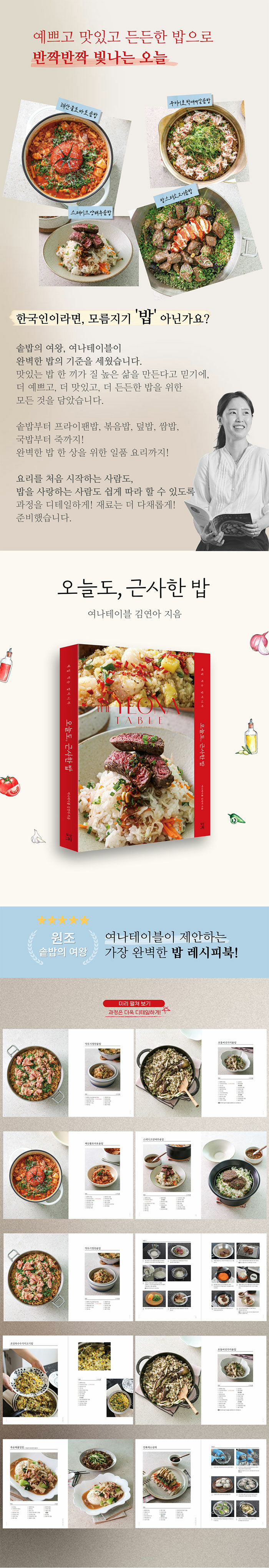 ¼Ü¹äÀÇ ¿©¿Õ, ¿©³ªÅ×À̺íÀÌ ¿Ïº®ÇÑ ¹äÀÇ ±âÁØÀ» ¼¼¿ü´Ù. ¸ÀÀÖ´Â ¹ä ÇÑ ³¢°¡ Áú ³ôÀº »îÀ» ¸¸µç´Ù°í ¹Ï±â¿¡, ´õ ¿¹»Ú°í, ´õ ¸ÀÀÖ°í, ´õ µçµçÇÑ ¹äÀ» À§ÇÑ ¸ðµç °ÍÀ» ´ã¾Ò´Ù. ´©±¸³ª ½±°Ô µû¶ó ÇÒ ¼ö ÀÖ´Â ¼Ü¹äÀÇ ±âº»±â¿Í ´õ µçµçÇϰí, ´õ Áñ°Ì°í, ´õ ±í°í, ´õ °Ç°ÇÑ ¼Ü¹ä, ÇÁ¶óÀÌÆÒ¹ä, ººÀ½¹ä∙µ¤¹ä∙½Ó¹ä, Á×∙±¹¹ä±îÁö! ¹ä°ú ÇÔ²², ¿Ïº®ÇÑ ÀÏǰ ¸Þ´ºµµ ´ã¾Ò´Ù. ¿ä¸®¸¦ óÀ½ ½ÃÀÛÇÏ´Â »ç¶÷µµ, ¹äÀ» »ç¶ûÇÏ´Â »ç¶÷µµ ½±°Ô µû¶ó ÇÒ ¼ö ÀÖµµ·Ï °úÁ¤À» µðÅ×ÀÏÇϰÔ, Àç·á´Â ´õ ´Ùä·Ó°Ô ÁغñÇß´Ù.