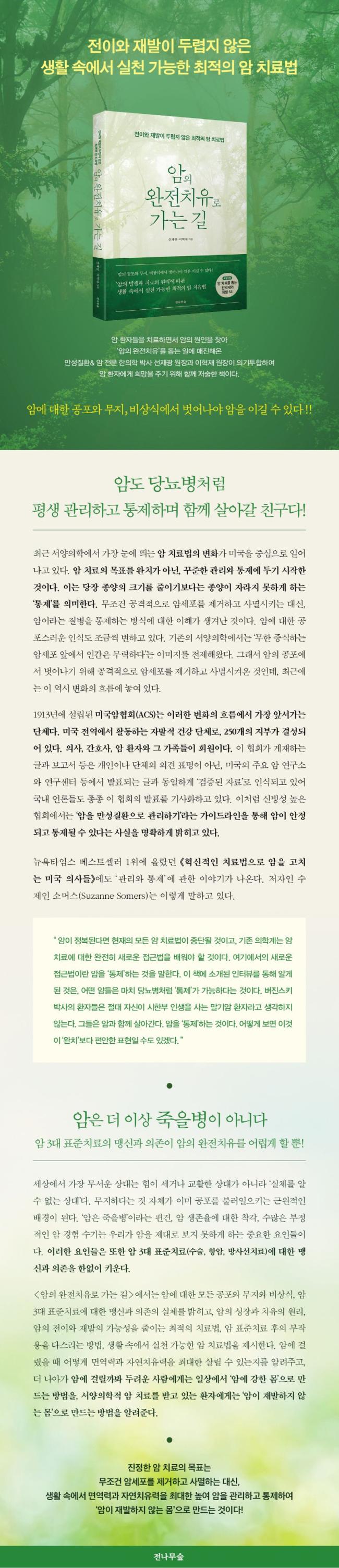 ÀÌ Ã¥ÀÌ ¾Ï¿¡ ´ëÇÑ µÎ·Á¿ò ¾øÀÌ °Ç°ÇÏ°Ô »ì±â¸¦ ¹Ù¶ó´Â ¸ðµç ÀÌ¿¡°Ô µµ¿òÀÌ µÇ±æ ±â´ëÇϸç, ¾Ï ȯÀÚ¿¡°Ô´Â Á¦2ÀÇ ÀλýÀ» ã´Â µ¥ ½Ç¿ëÀûÀÎ Áö½ÄÀÌ µÇ±æ ¹Ù¶õ´Ù.