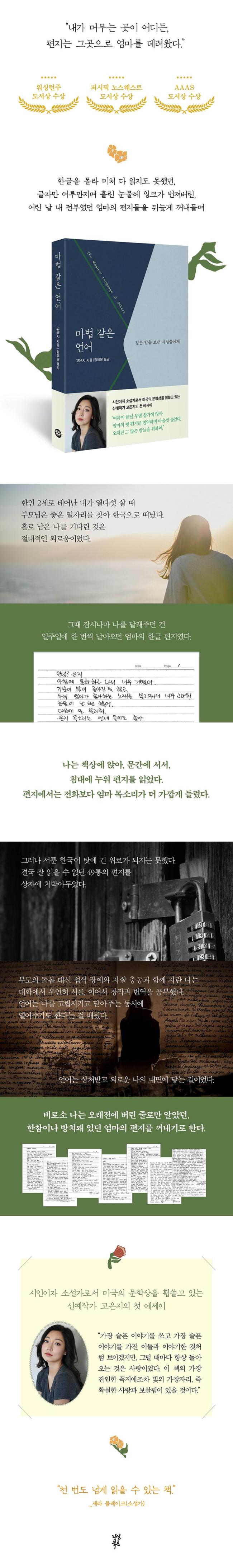 ÀúÀÚ°¡ ÀÎÅͺ信¼ ¹àÈ÷±æ, ¡º¸¶¹ý °°Àº ¾ð¾î¡»ÀÇ ÃʾÈÀº ¿ø·¡ ¾ö¸¶°¡ º¸³»¿Ô´ø 49ÅëÀÇ ÇÑ±Û ÆíÁö¸¦ µþÀÎ ÀÚ½ÅÀÌ ¿µ¾î·Î ¹ø¿ªÇÑ ±Û»ÓÀ̾ú°í ±× ¿Ü¿¡´Â µÎ ÆäÀÌÁö Á¤µµÀÇ ¿Å±äÀÌÀÇ ¸» Á¤µµ¿´´Ù°í ÇÑ´Ù. ¾î´À ¼ø°£ Á¤½Ä ÃâÆÇ¹°¿¡´Â 49Åë Áß¿¡¼ 10ÅëÀÇ ÆíÁö¸¸ÀÌ ½Ç¸®°Ô µÇ¾ú°í, 2ÂÊÀÇ Èıâ´Â 200ÂÊÀÇ »ê¹®ÀÌ µÇ¾ú´Ù. ±×·¸°Ô ÀÌ Ã¥Àº µ¶Æ¯ÇϰԵµ ¾ö¸¶°¡ º¸³½ ÇÑ±Û ÆíÁö, ±×¸®°í ÀúÀÚ º»ÀÎÀÇ °³ÀÎ»ç ¶Ç´Â °¡Á·ÀÇ ¿ª»ç¸¦ ´ãÀº ¿¡¼¼À̰¡ 10Â÷·Ê ¹ø°¥¾Æ ³ª¿À´Â ½ÄÀ¸·Î ±¸¼ºµÇ¾ú´Ù. ¹Ì±¹ÆÇ¿¡´Â ÇÑ±Û ÆíÁö¸¦ ÀúÀÚ°¡ Á÷Á¢ ¹ø¿ªÇÑ ¿µ¹®ÀÌ Æ÷ÇԵǾúÀ¸³ª Çѱ¹¾îÆÇ¿¡¼´Â Á¦¿ÜÇÏ°í ÆíÁöÀÇ À̹ÌÁö¸¸À» ³²°å´Ù. ¼ÕÀ¸·Î ¾²ÀÎ ¾ö¸¶ÀÇ ÆíÁö¿Í ȰÀÚ·Î µÈ »ê¹®À» ¹ø°¥¾Æ Àдٺ¸¸é µ¶ÀÚ´Â ¾î´À»õ, ÀÌ µÑÀÌ ¾Æ¸§´Ù¿î °ø»ý °ü°è¸¦ ÀÌ·çµµ·Ï ±³¹¦ÇÏ°Ô ¾ôÇô ÀÖÀ½À» ´«Ä¡Ã¤°Ô µÉ °ÍÀÌ´Ù.