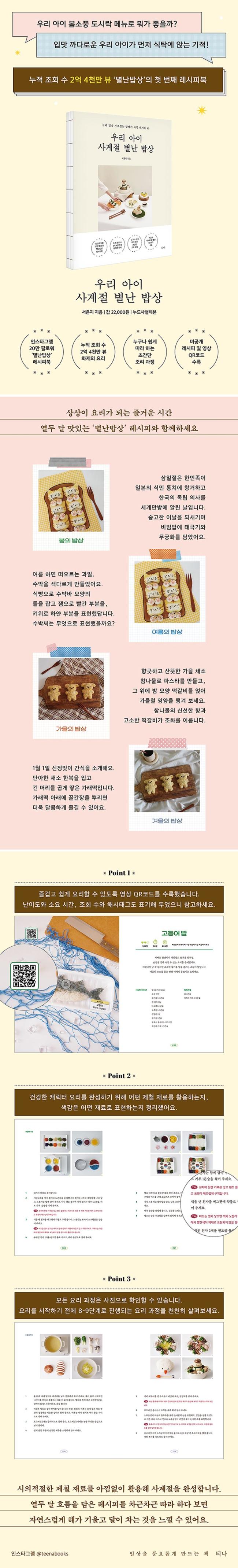 °èÀýÀÇ ¸À°ú ij¸¯ÅÍÀÇ ¸ÚÀ» »ì¸° ·¹½ÃÇÇ´Â ¹äűâ(¾ÆÀ̰¡ ƯÁ¤ ½Ã±â¿¡ ¹äÀ» °ÅºÎÇϰųª ½Ä»ç¿¡ Èï¹Ì¸¦ ÀÒ´Â Çö»ó)¸¦ °Þ´Â ¾ÆÀÌ´Â ¹°·Ð, ¿ØÁö ÀÔ¸ÀÀÌ ¾ø´Â ¾î¸¥µµ ½ÄŹÀ¸·Î ºÒ·¯¸ðÀº´Ù. ¡¶¿ì¸® ¾ÆÀÌ »ç°èÀý º°³ ¹ä»ó¡·¿¡´Â ¾î¸¥°ú ¾ÆÀ̰¡ ÇÑÀÚ¸®¿¡¼ Áñ±æ ¼ö ÀÖµµ·Ï ´Ü¶õÇÑ ½ÄŹÀ» ¸¸µå´Â TipÀ» °÷°÷¿¡ ¼ö·ÏÇß´Ù. º°³¹ä»óÀÇ ²Ü °°Àº TipÀº ¿ä¸®°¡ ¼Å÷ Ãʺ¸ÀÚ¿¡°Ô´Â »ì°¡¿î °¡À̵尡, ±×ÀÇ ·¹½ÃÇǸ¦ Âü°íÇØ ÀçÇØ¼®ÇÏ°í ½ÍÀº »ç¶÷¿¡°Ô´Â ÃÖ°íÀÇ ·¹ÆÛ·±½º°¡ µÉ °ÍÀÌ´Ù. ¶ÇÇÑ »çö ´©µå Á¦º» ¹æ½ÄÀ¸·Î Á¦ÀÛÇØ ½ÄŹ À§¿¡¼ Ȱ¦ ÆîÃÄ µÎ°í º¼ ¼ö ÀÖµµ·Ï ¸¸µê»õ¿¡µµ °øÀ» µé¿´´Ù.