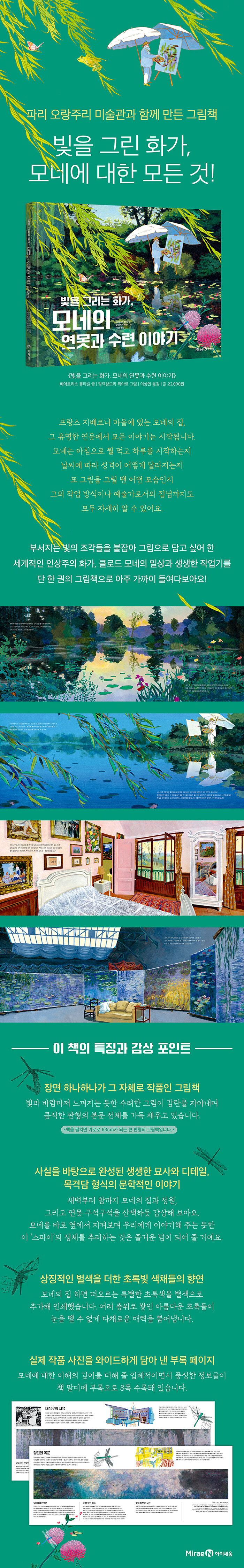 ¸ð³×ÀÇ ¡¶¼ö·Ã¡· ¿¬ÀÛ ÀÛ¾÷±â¿Í µÞÀ̾߱⸦ ¼Ó¼ÓµéÀÌ º¸¿© ÁÖ´Â ±×¸²Ã¥ÀÌ´Ù. ÇÁ¶û½º ÆÄ¸® ¿À¶ûÁÖ¸® ¹Ì¼ú°ü°úÀÇ Çù¾÷À¸·Î ¿Ï¼ºµÇ¾ú´Ù. ºû°ú ¹Ù¶÷¸¶Àú ´À²¸Áö´Â µíÇÑ ¼ö·ÁÇÑ ±×¸², »ç½ÇÀ» ¹ÙÅÁÀ¸·Î À籸¼ºµÈ ¸ñ°â´ã Çü½ÄÀÇ Èï¹Ì·Î¿î À̾߱Ⱑ Áö±Ý²¯ º» Àû ¾ø´Â ¸Å·ÂÀûÀÎ ¹æ½ÄÀ¸·Î Ŭ·Îµå ¸ð³×ÀÇ ÀÛǰ ¼¼°è¸¦ ÀÌÇØÇÏ°Ô ÇÑ´Ù. Ã¥ ¸»¹Ì¿¡ Ưº°È÷ ±¸¼ºµÈ ºÎ·Ï ÆäÀÌÁö¿¡´Â ½ÇÁ¦ ÀÛǰ »çÁø°ú ¸ð³×¿¡ ´ëÇÑ Ç³¼ºÇÑ Á¤º¸±ÛÀÌ ¼ö·ÏµÅ ÀÖ´Ù.