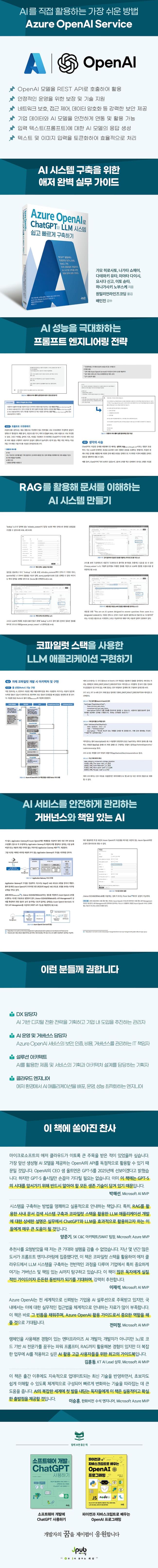 »ý¼ºÇü AIÀÇ ºü¸¥ È®»êÀ¸·Î AIÀÇ ´Ü¼ø Ȱ¿ëÀ» ³Ñ¾î Á÷Á¢ ±¸ÃàÇϰí ÃÖÀûÈÇÏ´Â ´É·ÂÀÌ ¿ä±¸µÇ°í ÀÖ´Ù. ÀÌ Ã¥Àº Azure OpenAI Service¸¦ Ȱ¿ëÇØ »ý¼ºÇü AI ¼ºñ½º¸¦ Á÷Á¢ °³¹ßÇÏ°í ½Ç¹«¿¡ Àû¿ëÇÏ´Â ¹æ¹ýÀ» ´Ù·ç´Â ±¹³» ù °¡À̵å·Î, AI ¸ðµ¨ÀÇ È¿°úÀûÀÎ Àû¿ë¹ýÀ» ü°èÀûÀ¸·Î ¾È³»ÇÑ´Ù.