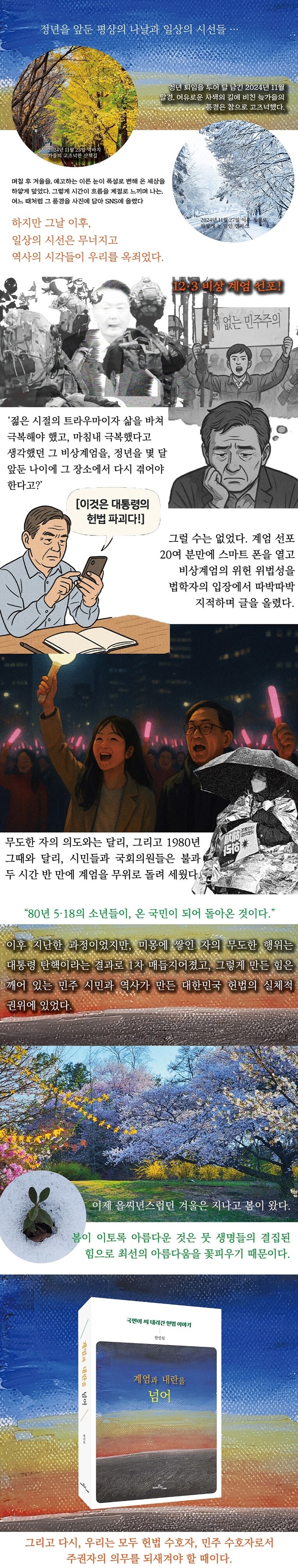 1980³â ÀüµÎȯ Á¤±Ç ¾Æ·¡ ´ëÇлýÀ¸·Î °è¾öÀ» Á÷Á¢ °æÇèÇß´ø ÀúÀÚ´Â, 40¿© ³âÀÌ Èê·¯ Á¤³âÀ» ¾ÕµÐ ¿À´Ã, ´Ù½Ã ¡®°è¾ö¡¯À̶ó´Â À̸§ÀÇ Ä£À§ Äíµ¥Å¸¸¦ ¸¶ÁÖÇÑ Æ®¶ó¿ì¸¶ ¼Ó¿¡¼ ÇÑ ½Ã¹ÎÀÌÀÚ ¹ýÇÐÀڷμ ±â·ÏÇÏ°í ¸»Çϱ⸦ ¸ØÃßÁö ¾Ê¾Ò´Ù. 12¡¤3 °è¾ö Äíµ¥Å¸°¡ À§Ç塤À§¹ýÀ» ³Ñ¾î ³»¶õ ¹üÁË·Î ±ÔÁ¤ÇÑ ÀúÀÚ´Â, °è¾ö ¼±Æ÷ 20¿© ºÐ¸¸¿¡ ÆäÀ̽ººÏ¿¡ ù ±Û <´ëÅë·ÉÀÇ Çå¹ý ÆÄ±«>¸¦ ¿Ã¸° °ÍÀ» ½ÃÀÛÀ¸·Î, °¿¬°ú Åä·Ð, ±Û¾²±â µî ½Ã¹Î°úÀÇ ¼ÒÅëÀ» ÅëÇØ »çŸ¦ Áø´ÜÇÏ°í ´ëÀÀ ¹æÇâÀ» Á¦½ÃÇØ ¿Ô´Ù. ÀÌ Ã¥Àº ±× °úÁ¤ÀÇ ¸ðµç ÁýÀû¹°ÀÌ´Ù.
