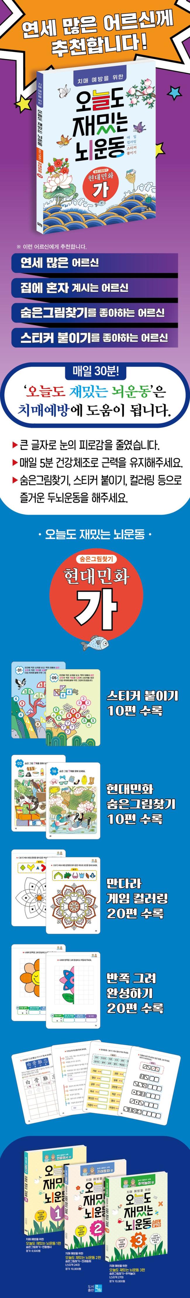¸ÅÀÏ ½±°í Àç¹Õ´Â ¹®Á¦µµ Ç®°í ¼ûÀº ±×¸²µµ ãÀ¸¸é¼ µÎ³ú¸¦ ¿òÁ÷¿© ÁÖÀÚ. <¿À´Ãµµ Àç¹Õ´Â ³ú¿îµ¿ Çö´ë¹ÎÈ (°¡)>Æí¿¡¼´Â ¼ûÀº±×¸²Ã£±â 10Æí, ½ºÆ¼Ä¿ ºÙÀ̱â 10Æí, °°Àº ¹®¾ç ã¾Æ °°Àº »öÀ¸·Î µµ¾ÈÀ» Ä¥ÇØ º¸´Â ¸¸´Ù¶ó Ä÷¯¸µ 20Æí, ³ª¸ÓÁö ¹ÝÂÊ ±×¸®±â 20Æí, »çÀÚ¼º¾î µû¶ó¾²±â, ´Ù¼¸°í°³ ÄûÁî ¸ÂÃß±â µî ´Ù¾çÇÑ È°µ¿ÀÌ µé¾îÀÖ´Ù.
