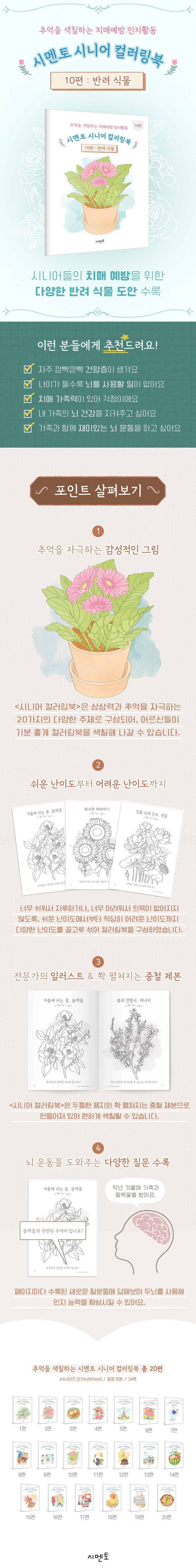 ÇູÇÏ°í °Ç°­ÇÑ ³ë³â±â¸¦ À§ÇØ ½Ã´Ï¾îµéÀÇ Ä¡¸Å ¿¹¹æÀ» µ½´Â Ä÷¯¸µºÏÀÌ´Ù. »ó»ó·Â°ú Ãß¾ïÀ» ÀÚ±ØÇÏ´Â 20°¡ÁöÀÇ ´Ù¾çÇÑ ÁÖÁ¦·Î ±¸¼ºµÇ¾î ¾î¸£½ÅµéÀÌ ±âºÐ ÁÁ°Ô Ä÷¯¸µºÏÀ» »öÄ¥ÇØ ³ª°¥ ¼ö ÀÖ´Ù. ¶ÇÇÑ ÆäÀÌÁö¸¶´Ù ¼ö·ÏµÈ ´Ù¾çÇÑ Áú¹®À» ÅëÇØ ³ú ¿îµ¿À» µµ¿Í ÀÎÁö ´É·ÂÀ» Çâ»ó½Ãų ¼ö ÀÖµµ·Ï ÇÏ¿´´Ù.