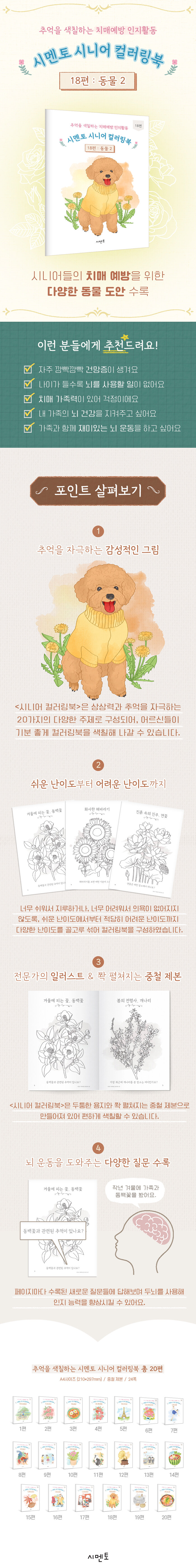 ÇູÇÏ°í °Ç°ÇÑ ³ë³â±â¸¦ À§ÇØ ½Ã´Ï¾îµéÀÇ Ä¡¸Å ¿¹¹æÀ» µ½´Â Ä÷¯¸µºÏÀÌ´Ù. »ó»ó·Â°ú Ãß¾ïÀ» ÀÚ±ØÇÏ´Â 20°¡ÁöÀÇ ´Ù¾çÇÑ ÁÖÁ¦·Î ±¸¼ºµÇ¾î ¾î¸£½ÅµéÀÌ ±âºÐ ÁÁ°Ô Ä÷¯¸µºÏÀ» »öÄ¥ÇØ ³ª°¥ ¼ö ÀÖ´Ù. ¶ÇÇÑ ÆäÀÌÁö¸¶´Ù ¼ö·ÏµÈ ´Ù¾çÇÑ Áú¹®À» ÅëÇØ ³ú ¿îµ¿À» µµ¿Í ÀÎÁö ´É·ÂÀ» Çâ»ó½Ãų ¼ö ÀÖµµ·Ï ÇÏ¿´´Ù.