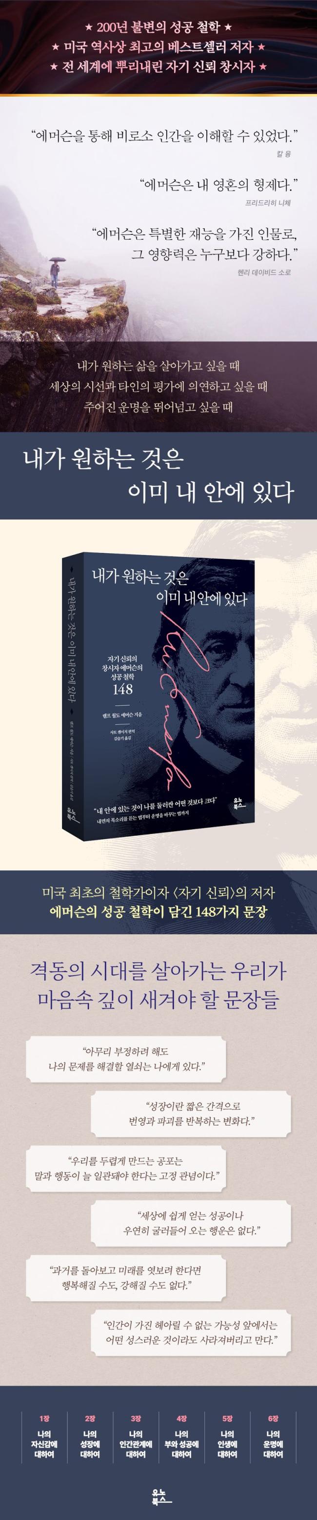 ¡¶³»°¡ ¿øÇÏ´Â °ÍÀº ÀÌ¹Ì ³» ¾È¿¡ ÀÖ´Ù¡·´Â ¼º°øÀûÀÎ ÀλýÀ» »ì°í ½ÍÀº »ç¶÷À̶ó¸é ¹Ýµå½Ã Àоî¾ß ÇÒ ¿¡¸Ó½¼ÀÇ ÁÖ¿Á°°Àº ¼º°ø öÇÐ 148°¡Áö¸¦ ´ãÀº Ã¥ÀÌ´Ù. ÀÌ Ã¥À» ÀÐÀ¸¸é ¡¶³»°¡ ¿øÇÏ´Â °ÍÀº ÀÌ¹Ì ³» ¾È¿¡ ÀÖ´Ù¡·¶ó´Â Á¦¸ñó·³ ³»°¡ ²÷ÀÓ¾øÀÌ ¿øÇØ ¿Ô´ø °ÍµéÀÌ ÀÌ¹Ì ³» ¾È¿¡ Á¸ÀçÇÑ´Ù´Â »ç½ÇÀ» ±ú´ÞÀ» ¼ö ÀÖ´Ù.