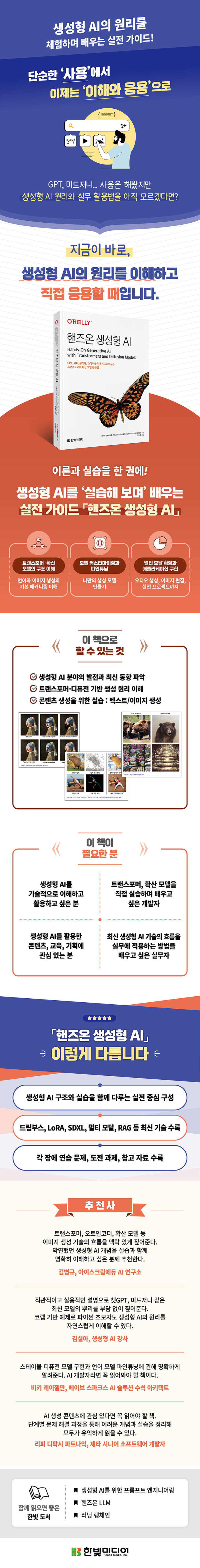 ÇÁ·ÎÇÁÆ® ¿£Áö´Ï¾î¸µÀ» ³Ñ¾î Æ®·£½ºÆ÷¸Ó¿Í È®»ê ¸ðµ¨ÀÇ ³»ºÎ ±¸Á¶¸¦ ޱ¸ÇÏ¸é¼ »ý¼ºÇü AIÀÇ ÇÙ½É ¿ø¸®¸¦ ÀÌÇØÇϰí, Ãֽбâ¼úÀ» Á÷Á¢ ±¸ÇöÇØº¸¸ç ÇнÀÇÒ ¼ö ÀÖµµ·Ï ±¸¼ºµÇ¾î ÀÖ´Ù. Æ®·£½ºÆ÷¸Ó¿Í È®»ê ¸ðµ¨À» Áß½ÉÀ¸·Î »ý¼ºÇü AIÀÇ ÁÖ¿ä ±¸Á¶¿Í µ¿ÀÛ ¹æ½ÄÀ» ´Ù·ç°í, À̹ÌÁö¡¤ÅؽºÆ®¡¤¿Àµð¿À¸¦ »ý¼ºÇÏ´Â ¸ÖƼ¸ð´Þ ¸ðµ¨ÀÇ ÀÛµ¿ ¹æ½Ä°ú Ȱ¿ë¹ýÀ» ±íÀÌ ÀÖ°Ô ¼³¸íÇÑ´Ù.
