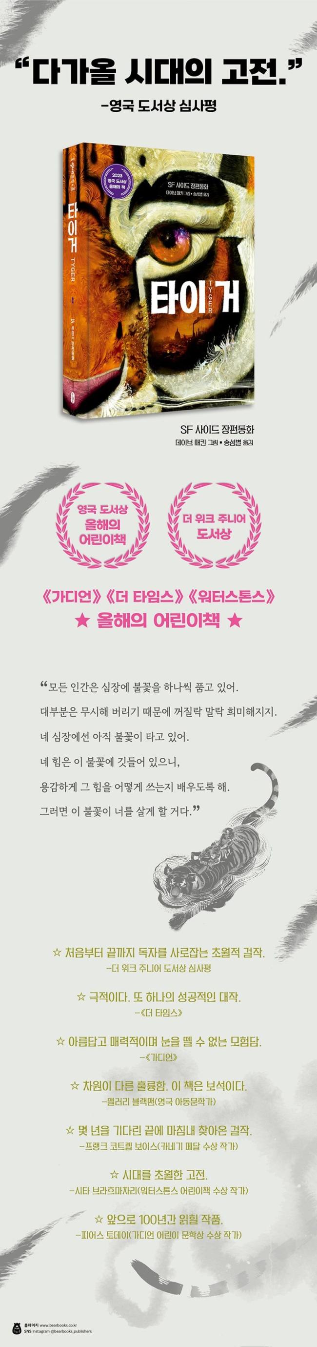 ¡®Å¸À̰Å(Tyger)¡¯¶ó´Â À̸§À» °¡Áø ÀÌ È£¶ûÀÌ´Â Àª¸®¾ö ºí·¹ÀÌÅ©ÀÇ ½Ã ¡´The Tyger(1794)¡µ¿¡¼ Âø¾ÈµÈ ij¸¯ÅÍ´Ù. ºí·¹ÀÌÅ©ÀÇ Å¸À̰Ű¡ ¼¼»óÀ» âÁ¶ÇÑ °æÀ̷οî ÈûÀ» »ó¡ÇϵíÀÌ, ÀÌ Ã¥ÀÇ Å¸À̰жÇÇÑ ´Ù¸¥ ¼¼°è¿¡¼ °Ç³Ê¿Â ½ÅÀûÀÎ Á¸Àç´Ù. Áö±ÝÀº ºñ·Ï »óó ÀÔÀº È£¶ûÀÌÀÇ ¸ð½ÀÀ¸·Î ÀÜÇØ ¼Ó¿¡ ¼û¾î ÀÖÁö¸¸, ŸÀ̰Ŵ ¹«¾ùÀÌµç µÉ ¼ö ÀÖ°í, ¼¼°è¿Í ¼¼°è¸¦ ÀÚÀ¯·Ó°Ô ³Ñ³ªµé¸ç, ÃÊÇö½ÇÀûÀÎ ÈûÀ» Áö´Ï°í ÀÖ´Ù. ±×¸®°í ¹«¾ùº¸´Ùµµ ¡®ºÒ¸êÇÏ´Â Á¸À硯´Ù.