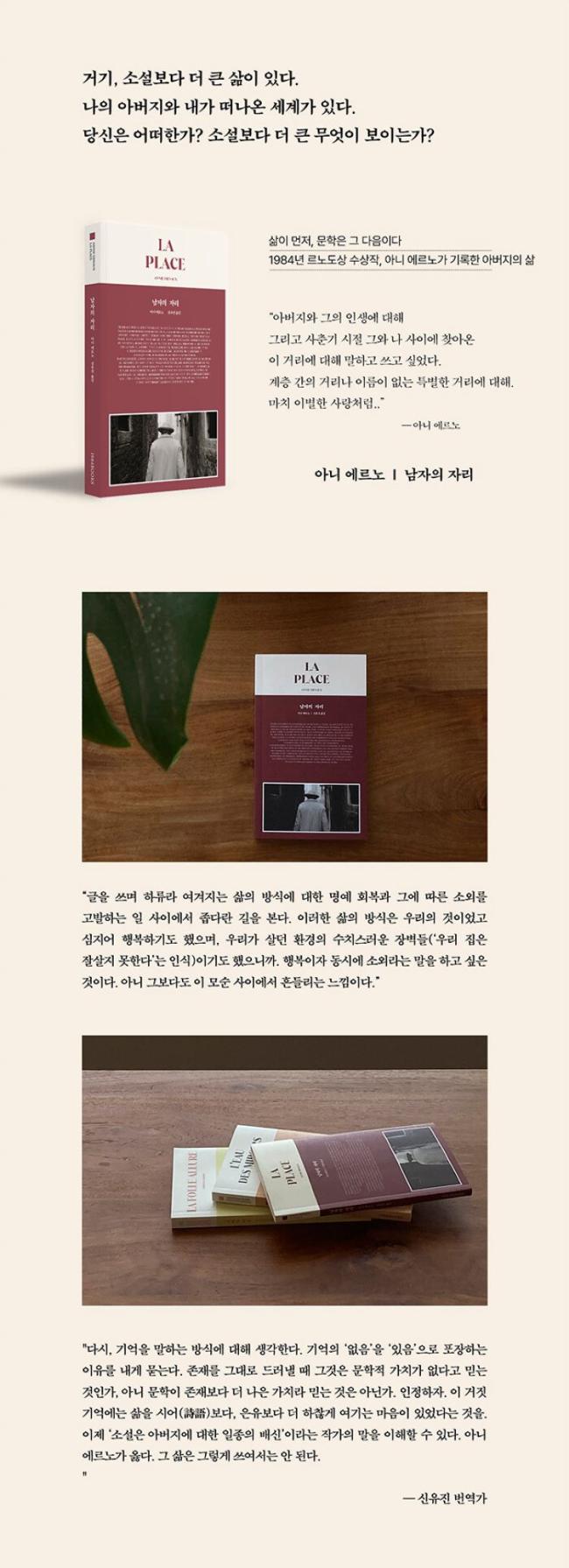ÀÚ½ÅÀÇ °³ÀÎÀû üÇèÀ» º¸ÆíÀû Â÷¿øÀ¸·Î È®ÀåÇØ³ª°¡´Â µ¶º¸ÀûÀÎ ±Û¾²±â¿Í ²ÙÁØÇÑ ÀÛǰ Ȱµ¿À¸·Î Àü ¼¼°è µ¶Àڵ鿡°Ô »ç¶û¹Þ°í ÀÖ´Â ¾Æ´Ï ¿¡¸£³ëÀÇ ¡º³²ÀÚÀÇ ÀÚ¸®¡» °³Á¤ÆÇÀÌ Ãâ°£µÇ¾ú´Ù. ¾Æ¹öÁöÀÇ »îÀ» ȸ°íÇÏ¸ç ±×ÀÇ ¸»°ú Á¦½ºÃ³, ÃëÇâ, Àλý¿¡ ¿µÇâÀ» ¹ÌÃÆ´ø »ç°Çµé, ÀڽŰú ÇÔ²² ³ª´³´ø ÇÑ Á¸ÀçÀÇ ¸ðµç °´°üÀûÀΠǥÀûÀ» »ç½ÇÀ» ¹ÙÅÁÀ¸·Î 'ÇÊ¿äÇÑ ´Ü¾î'¸¸À» »ç¿ëÇØ ¿Å°Ü ÀûÀº ÀÌ ÀÛǰÀº, '¾î¶² Çö´ë ¹®Çаúµµ ´àÁö ¾ÊÀº ¾ÐµµÀûÀÎ °ÉÀÛ'À̶ó´Â Æò°ú ÇÔ²² 1984³â ¸£³ëµµ»óÀ» ¼ö»óÇϱ⵵ Çß´Ù.