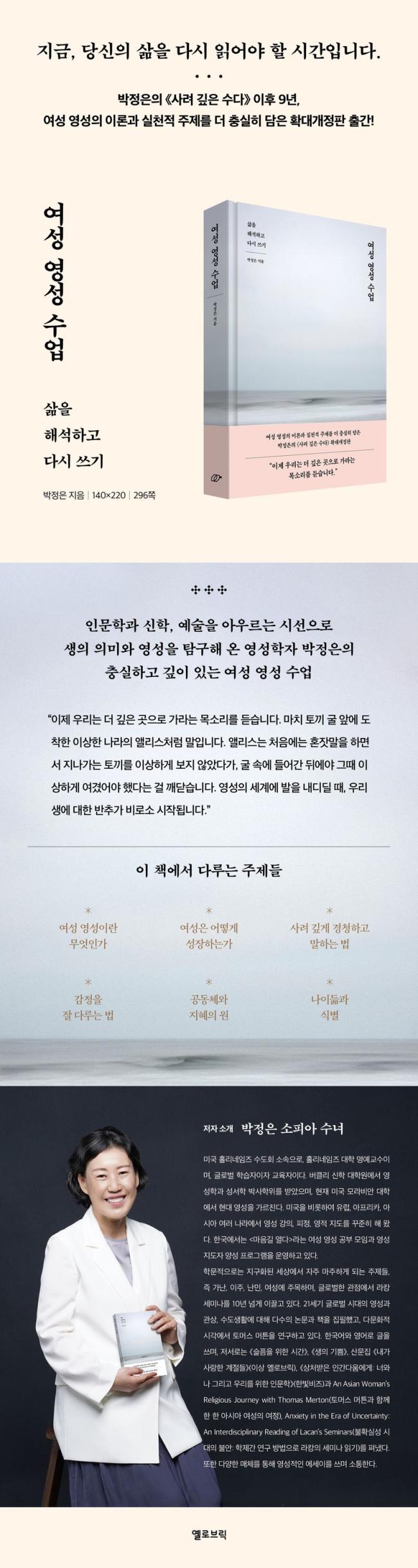 È®´ë°³Á¤ÆÇÀ¸·Î ¼±º¸ÀÌ´Â ¡¶¿©¼º ¿µ¼º ¼ö¾÷¡·Àº ¡¶»ç·Á ±íÀº ¼ö´Ù¡·ÀÇ ³»¿ëÀ» ¹ÙÅÁÀ¸·Î ½ÅºñÁÖÀÇ, ½Äº°, ³ë³â°ú Á×À½ µî »îÀÇ ÈĹݺθ¦ ¾Æ¿ì¸£´Â ÁÖÁ¦¸¦ ´õÇßÀ¸¸ç, ¿©¼ºÀÇ ¿µÀû ¼ºÀå °úÁ¤°ú ´Ù¾çÇÑ ÀÏ»óÀÇ ÅØ½ºÆ®¸¦ ÅëÇØ »îÀ» ÇØ¼®ÇÏ´Â ¹æ¹ý µîÀ» Á¤¸®ÇÏ¿© ¿©¼ºÀÇ ³»¸é ¿©Á¤À» °üÅëÇÏ´Â º»°Ý ¿µ¼º ±³°ú¼·Î ¿Ï¼ºÇÏ¿´½À´Ï´Ù.