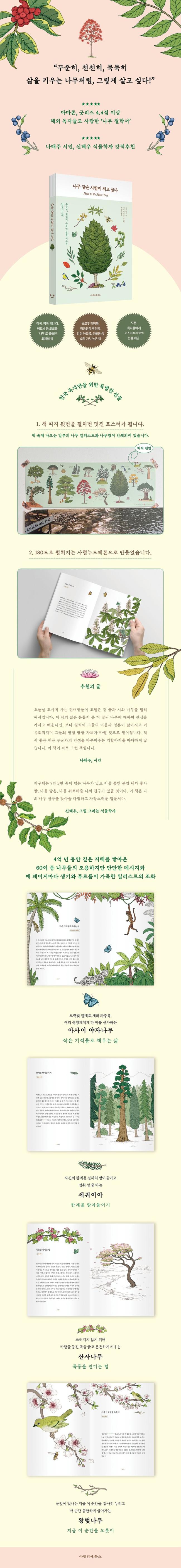 ³ª¹«ÀÇ ¸Å·ÂÀ» °¡Àå ¾Æ¸§´ä°Ô ¾ÐÃàÇØ¼ ¼Ò°³ÇÑ Ã¥ÀÌ Ãâ°£µÇ¾ú´Ù. ²ÙÁØÈ÷, õõÈ÷, ¹¬¹¬È÷ »îÀ» Ű¿ì´Â 59Á¾ ³ª¹«µéÀÇ ÁöÇý¸¦ ´ãÀº ±Û¿¡ ¸ðµç ÆäÀÌÁö¸¶´Ù »ý±â¿Í Ǫ¸£¸§ÀÌ °¡µæÇÑ ÀÏ·¯½ºÆ®°¡ ¾î¿ì·¯Áø ¡¶³ª¹« °°Àº »ç¶÷ÀÌ µÇ°í ½Í´Ù¡·°¡ ¹Ù·Î ±× Ã¥ÀÌ´Ù. ¾Æ¸¶Á¸°ú Àü ¼¼°è ÃÖ´ëÀÇ µ¶¼ Ä¿¹Â´ÏƼÀÎ ±Â¸®Áî(Goodreads)¿¡¼´Â ÆòÁ¡ 4.4Á¡ ÀÌ»óÀ» ¹ÞÀ¸¸ç Áö±Ý ¿ì¸®¿¡°Ô ²À ÇÊ¿äÇÑ ¡®³ª¹« öÇм¡¯¶ó´Â È£ÆòÀ» ¹Þ¾Ò´Ù.
