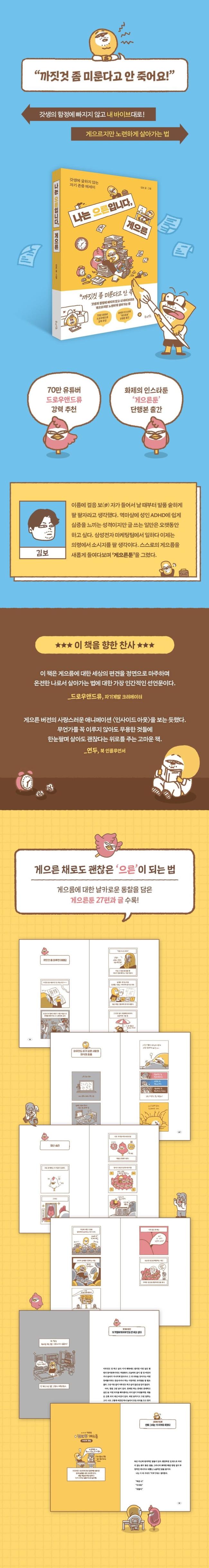 ¡¶³ª´Â À¸¸¥ÀÔ´Ï´Ù, °ÔÀ¸¸¥¡·Àº ¿ì¸®°¡ ±×µ¿¾È ºÎÁ¤ÀûÀ¸·Î ¹Ù¶óºÃ´ø ¡®°ÔÀ¸¸§¡¯À» »õ·Î¿î ½Ã°¢¿¡¼ Ç®¾î³½ Ã¥ÀÌ´Ù. ÀúÀÚ´Â ¾ÈÁ¤µÈ Ä¿¸®¾î¸¦ ½×À» ¼ö ÀÖ´Â ´ë±â¾÷À» ±×¸¸µÎ°í µü 1³â¸¸ ÀÚ½ÅÀÇ °ÔÀ¸¸§À» µé¿©´Ùº¸¸ç »ì¾Æº¸ÀÚ°í °á½ÉÇß°í, °ÔÀ¸¸§¿¡ ´ëÇÑ ½Å¹ÚÇÑ °íÂûµéÀ» ¡®°ÔÀ¸¸¥Å÷¡¯À¸·Î ±×·Á ¸¹Àº À̵éÀÇ ÁÖ¸ñÀ» ¹Þ¾Ò´Ù. ÀÌ Ã¥¿¡´Â ÀúÀÚ¸¸ÀÇ ³¯Ä«·ÓÁö¸¸ À§Æ® °¡µæÇÑ ¹®Ã¼·Î ÆîÃij½ ¿¡¼¼ÀÌ¿Í ±×°£ ¿¬ÀçÇØ¿Â ¡®°ÔÀ¸¸¥Å÷¡¯ Áß 27ÆíÀ» ¾ö¼±ÇØ ´ã¾Ò´Ù. ƯÈ÷ °ÔÀ¸¸¥Å÷Àº ´ÜÇົ Ãâ°£À» À§ÇØ ÀüºÎ »õ·Î ±×¸®¸é¼ ³»¿ëÀ» Á» ´õ ¾ËÂ÷°Ô º¸¿ÏÇß´Ù. ÁÖÀΰøÀÎ ´À±ßÇÏÁö ¾ÊÀº ³ª¹«´Ãº¸ ¡®°ÔÀ¸¸¥¡¯°ú ¹æ½ÉÇÏÁö ¾Ê´Â Åä³¢ ¡®ºÎÁö·±¡¯, ÇÎÅ© ¹æ¾î ½´Æ®¸¦ ÀÔÀº ´ß ¡®Çΰ衯±îÁö ±Í¿±°í °³¼º ³ÑÄ¡´Â ij¸¯Å͵éÀ» ÅëÇØ °ÔÀ¸¸§¿¡ ´ëÇÑ °®°¡Áö ¿ÀÇØµé°ú °ÔÀ¸¸§ÀÇ À¯Çüº° Ư¡, À¯ÄèÇÑ ¿¡ÇǼҵåµéÀ» ¸¸³ªº¼ ¼ö ÀÖ´Ù.