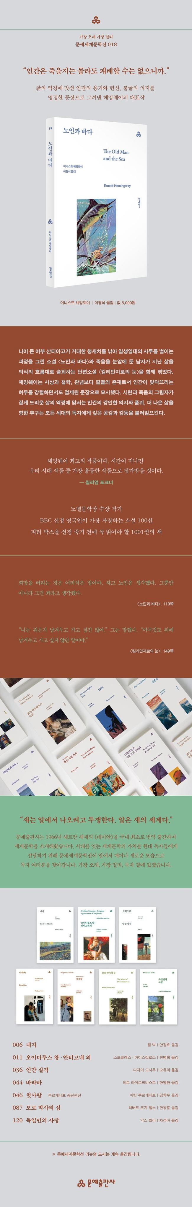 ÈçÈ÷ ¡¶³ëÀΰú ¹Ù´Ù¡·¸¦ ¸áºôÀÇ ¡¶¸ðºñ µñ¡·¿¡ ºñ±³ÇÑ´Ù. ÈÄÀÚ¿¡´Â »ó¡°ú öÇÐ, Àå´ëÇÑ ¼»ç¿Í °·ÄÇÑ °³¼ºÀÌ ÀÖÁö¸¸ Çì¹Ö¿þÀÌÀÇ ÀÛǰ¿¡´Â ±×·± °ÍµéÀ» ¸ðµÎ °á¿©Çß´Ù°í Æò°¡ÇÑ´Ù. »ç»ó°ú öÇаú °ü³äÀº ÃßÈ£µµ ¾ø´Ù. ´Ù¸¸ ¹Ù´Ù¿Í °í±â, ³ëÀΰú ¼Ò³âÀÌ ÀÖÀ» »ÓÀÌ´Ù. ¹Ù´Ù´Â ¹Ù´ÙÀ̰í, ±¸¸§Àº ±¸¸§ ±× ÀÚü, ¹°°í±â´Â ¹°°í±âÀÌÁö, ±× ¿ÜÀÇ ¾Æ¹«°Íµµ ¾Æ´Ï´Ù. Çì¹Ö¿þÀÌ´Â ÀÚ½ÅÀÇ º»ÁúÀÌ À°Ã¼Àû Çൿ°ú ¸»ÇϰíÀÚ ÇÏ´Â ¹Ù°¡ Á÷°áµÇ´Â ½É¸® À̿ܿ¡´Â ¾Ö¸ÅÇÑ »ç°í¿Í °ü³äÀ» °á¿©ÇÑ ¿ø½ÃÀûÀÎ Àΰ£À» µîÀå½Ãų »ÓÀÌ´Ù. ÀÛ°¡´Â ÀÌ·¯ÇÑ ¿ø½ÃÀÎ, Áï ³ëÀÎÀ» ÅëÇØ¼ ÀھƸ¦ ºÐ¸íÈ÷ ÀǽÄÇÑ´Ù. ±×¸®°í ³ëÀÎÀÇ ÃÖÁ¾ÀûÀÎ ½Â¸®µµ ÆÐ¹èµµ ¾Æ´Ñ ÅõÀïÀÇ ³¡¿¡´Â »çÀÚÀÇ ²Þ°ú °°Àº Çູ°¨¸¸ÀÌ ÀÖ´Ù.