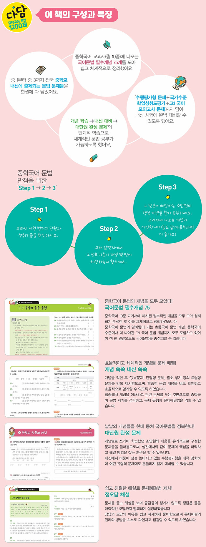 ¨è ÁßÇб¹¾î ¹®¹ýÀÇ ¹Ø¹ÙÅÁÀÌ µÇ´Â Ãʵ¾î ¹®¹ý °³³ä, ÁßÇб¹¾î ¼öÁØ¿¡¼ ´õ ³ª¾Æ°£ °í1 ±¹¾î ¹®¹ý °³³äÀ» ¸ðµÎ Æ÷ÇÔÇÔÀ¸·Î½á ÀÌ Ã¥ ÇѱǸ¸À¸·Îµµ ÃÊ¡¤Áß¡¤°í1ÀÇ ±¹¾î ¹®¹ýÀ» ÃÑÁ¤¸®ÇÒ ¼ö ÀÖ´Ù.