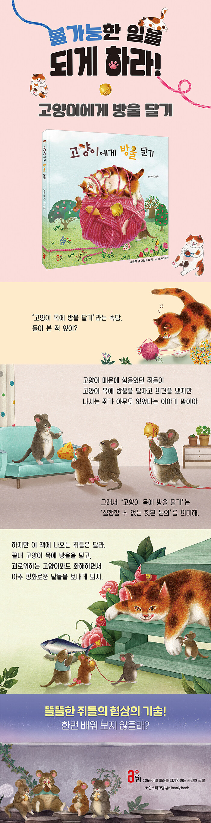 ¡®°í¾çÀÌ ¸ñ¿¡ ¹æ¿ï ´Þ±â¡¯¶ó´Â ¼Ó´ãÀÌ ÀÖ´Ù. ÀÌ ¼Ó´ãÀº À̼٠¿ìÈÀÇ Çϳª·Î, ¿µ¾î·Î ¡®Belling the cat¡¯À̶ó´Â °ü¿ë±¸·Î ¾²ÀδÙ. Àü ¼¼°è¿¡ ³Î¸® ¾Ë·ÁÁø ÀÌ À̾߱â´Â °í¾çÀÌ¿¡°Ô ÀâÈú±î ºÁ ºÒ¾ÈÇØÇÏ´ø ÁãµéÀÌ ¸ð¿© ȸÀǸ¦ ÇÑ ÈÄ, °í¾çÀÌ ¸ñ¿¡ ¹æ¿ïÀ» ´ÞÀÚ´Â ÇØ°á ¹æ¹ýÀ» ã¾Æ³ÂÁö¸¸ ¾Æ¹«µµ ³ª¼Áö ¾Ê¾Æ ½ÇÇà¿¡ ¿Å±æ ¼ö ¾ø¾ú´Ù´Â ³»¿ëÀÌ´Ù. ±×·¡¼ ÀÌ ¼Ó´ãÀº ¡®½ÇÇàÇÒ ¼ö ¾ø´Â Ź»ó°ø·Ð¿¡ ´ëÇÑ ºñÆÇ¡¯À̳ª ¡®¸»ÇÏ±ä ½±Áö¸¸ ÇൿÇÏ±ä ¾î·Æ´Ù¡¯´Â Àǹ̷Π¾²ÀδÙ.