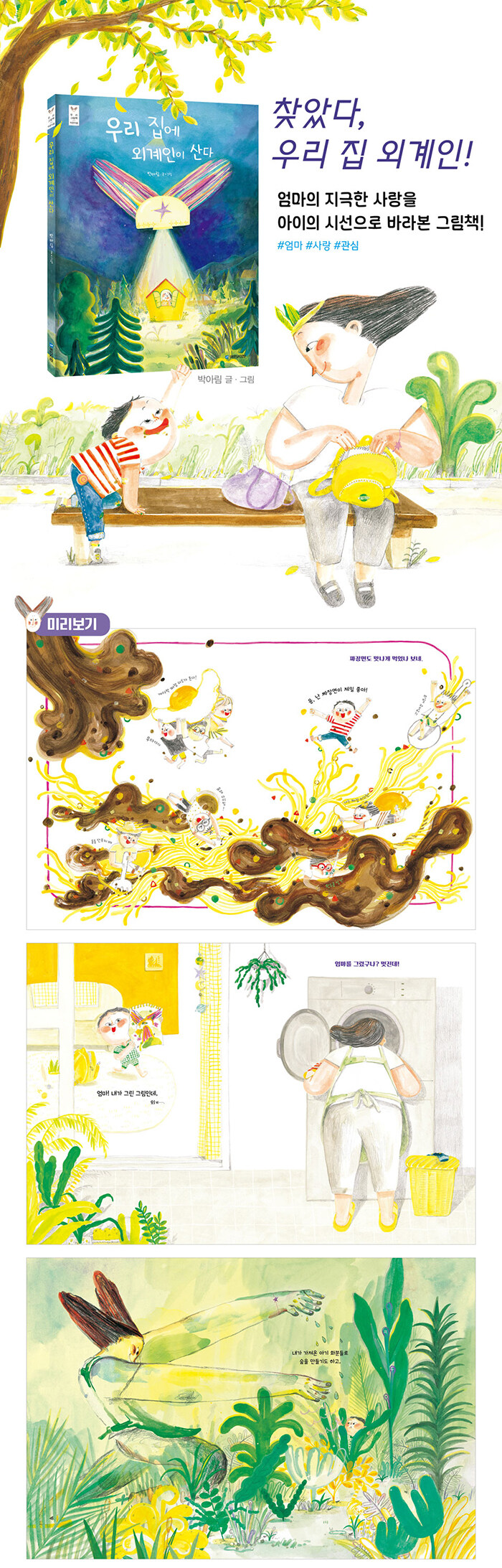¡º¿ì¸® Áý¿¡ ¿Ü°èÀÎÀÌ »ê´Ù¡»´Â ¾ö¸¶ÀÇ Áö±ØÇÑ »ç¶ûÀ» ¾ÆÀÌÀÇ ½Ã¼±À¸·Î ¹Ù¶óº» ±×¸²Ã¥ÀÌ´Ù. ¹àÀº Ç¥Á¤ÀÇ ÃµÁø³¸¸ÇÑ ¾ÆÀÌ¿Í ¾ÆÀ̸¦ À§ÇØ ¹«¾ùÀ̵ç ôô ÇØ³»´Â ¾ö¸¶°¡ µûµíÇÑ »öäÀÇ ±×¸² ¼Ó¿¡¼ ºÎµå·´°Ô ÆîÃÄÁø´Ù. ÀÌ Ã¥Àº ¾ÆÀÌ¿Í ÇÔ²²ÇÏ´Â º¸ÅëÀÇ Àϻ󿡼 ¹ß°ßÇÏ´Â µû½ºÇÑ ÇູÀ» °í½º¶õÈ÷ ÀüÇÑ´Ù. ¾ÆÀÌ¿¡°Ô´Â ¡°¸Â¾Æ! ¿ì¸® ¾ö¸¶µµ ±×·¡!¡± ÇÏ´Â °ø°¨À», ¾ö¸¶¿¡°Ô´Â ¿ïÄÀÇÏ´Â °¨µ¿À» ÀüÇØ ÁÙ °ÍÀÌ´Ù.