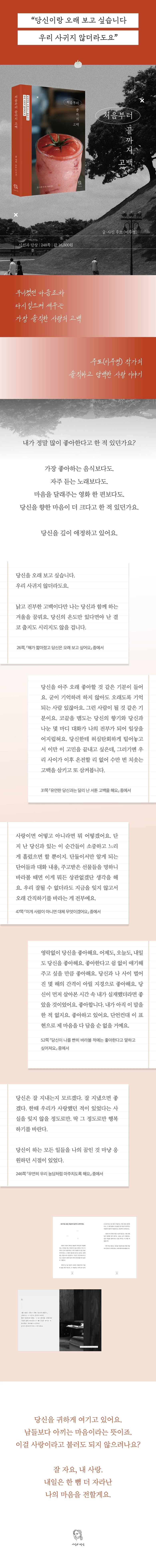 ªÀº ¹®Àå ÇϳªÇϳª¿¡ ¹¯¾î³ Áø½ÉÀº ¸¶Ä¡ ´©±º°¡ÀÇ ¿À·¡µÈ Àϱ⸦ ¿³º¸´Â µíÇÑ °ø°¨°ú À§·Î¸¦ ³²±ä´Ù. °á±¹ ÀÌ Ã¥Àº ¡°»ç¶ûÀÌ ³¡³ªµµ »ç¶ûÀº °è¼ÓµÈ´Ù¡±´Â »ç½ÇÀ» Á¶¿ëÈ÷ Àϱú¿ö ÁØ´Ù.
