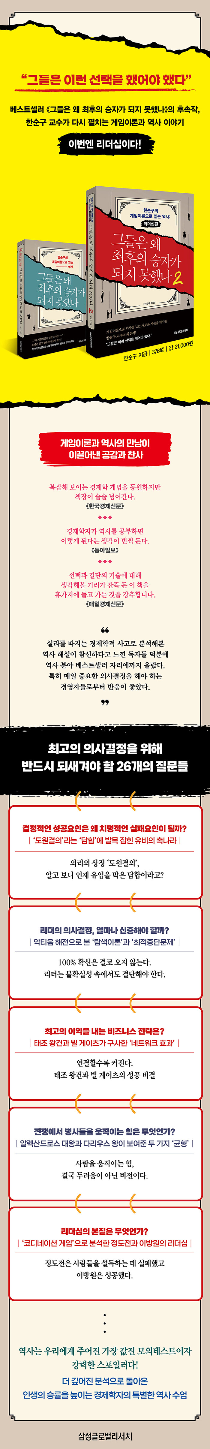 Àß ¾Ë·ÁÁø ¿ª»çÀû »ç°ÇµéÀ» °ÔÀÓÀÌ·ÐÀÇ °üÁ¡À¸·Î »õ·Ó°Ô ÇØ¼®ÇÏ¿© Àι°µéÀÇ ½É¸®¿Í ¼ºÆÐ¸¦ ¼¼¹ÐÇÏ°Ô ºÐ¼®ÇÑ ¡¶±×µéÀº ¿Ö ÃÖÈÄÀÇ ½ÂÀÚ°¡ µÇÁö ¸øÇß³ª¡·¸¦ ÁýÇÊÇÏ¿© º£½ºÆ®¼¿·¯¿¡ ¿Ã¶úÀ¸¸ç, ¿ì¸® ½Ã´ë ÁøÂ¥ °æÁ¦±³À°ÀÇ Àǹ̸¦ µÇ¹¯´Â ¡¶´ç½ÅÀÇ °æÁ¦IQ¸¦ ³ô¿©¶ó¡·´Â 2024³â ¼¼Á¾µµ¼ ±³¾çºÎ¹®¿¡ ¼±Á¤µÇ¾ú´Ù.