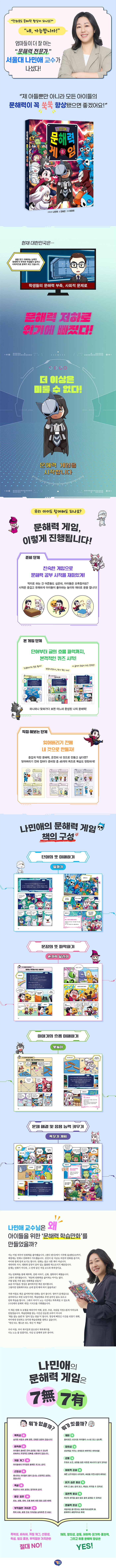 ¿äÁò ¾ÆÀ̵éÀÇ ÇнÀ °í¹Î 1¼øÀ§´Â ¡®¹®Çط¡¯.¡º³ª¹Î¾ÖÀÇ ¹®ÇØ·Â °ÔÀÓ¡»Àº ±× ÇØ°áÃ¥À» ¡®°ÔÀÓ¡¯À̶ó´Â Èï¹Ì·Î¿î ³îÀÌ¿Í Á¢¸ñÇØ, ¾ÆÀ̵éÀÌ ¹®ÇØ·ÂÀ» Áñ°Ì°Ô ¹è¿ì°í ¾ð¾îÀÇ ÈûÀ» Ű¿ö°¡´Â ÇнÀ¸¸ÈÀÔ´Ï´Ù. 2125³â ´ëÇѹα¹.¹®ÇØ·Â ÀúÇϷΠȥ¶õ¿¡ ºüÁø ¹Ì·¡ »çȸ¿¡¼ ¾ÆÀ̵éÀº ¡®¹®ÇØ·Â °ÔÀÓ¡¯¿¡ Á¢¼ÓÇØ °¡»ó °ø°£ ¼Ó ¹®Á¦¸¦ Ç®¸ç ÀÒ¾î¹ö¸° ¼ÒÅëÀÇ ÈûÀ» µÇã´Â ¸ðÇèÀ» ½ÃÀÛÇÕ´Ï´Ù. ³ª¹Î¾Ö ±³¼ö´Â ÀÚ½ÅÀÇ ÃʵîÇлý Àڳฦ À§ÇØ¡°Àç¹ÌÀÖ°Ô, ±×·¯³ª Á¦´ë·Î ¹è¿ì´Â ¹®ÇØ·Â °øºÎ¹ý¡±À» °í¹ÎÇϸç±âȹ ´Ü°èºÎÅÍ ½ºÅ丮, ¹®Á¦ ³À̵µ, ÇнÀ ¼³°è±îÁö Àü °úÁ¤¿¡ Á÷Á¢ Âü¿©Çß½À´Ï´Ù. Áñ±â´Â ¼ø°£, ¹®ÇØ·ÂÀÌ ÀÚ¶õ´Ù!ÇнÀ°ú ³îÀÌÀÇ °æ°è¸¦ Çã¹® »õ·Î¿î ÇüÅÂÀÇ ¹®ÇØ·Â ÇнÀ¸¸È.¡º³ª¹Î¾ÖÀÇ ¹®ÇØ·Â °ÔÀÓ 1¡»ÀÌ ÀÌÁ¦ ½ÃÀ۵˴ϴÙ.