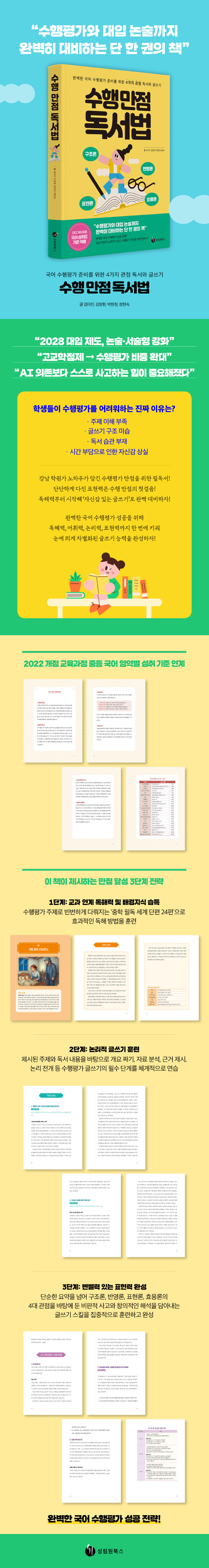 ¡º¼öÇà ¸¸Á¡ µ¶¼¹ý¡»Àº ¹«¾ùº¸´Ù °³² Çпø°¡¿¡¼ °ËÁõµÈ °íµæÁ¡ Àü·«°ú ÇнÀ ³ëÇϿ츦 ´ã°í ÀÖ´Ù. Ãֽб³À° Æ®·»µå¿Í 2028 ´ëÀÔ °³ÆíÀÇ ¹æÇâÀ» ¹Ý¿µÇÏ¿©, ±¹¾î ¼öÇàÆò°¡³ª ¼¼úÇü¡¤³í¼úÇü Æò°¡±îÁö ÇÑ ¹ø¿¡ ´ëºñÇÒ ¼ö ÀÖµµ·Ï ±¸¼ºÇß´Ù. µû¶ó¼ ÇлýµéÀº ÀÌ Ã¥À» ÅëÇØ ½Ã°£ ³¶ºñ ¾øÀÌ ¹®ÇØ·ÂÀº ¹°·Ð, ³í¸®ÀûÀ̰í ü°èÀûÀÎ ±Û¾²±â ÈÆ·ÃÀ» ÇÒ ¼ö ÀÖÀ¸¸ç, ³ª¾Æ°¡ ½º½º·ÎÀÇ ¼ºÀå °úÁ¤°ú ½Ç·Â Çâ»óÀ» È®ÀÎÇÒ ¼ö ÀÖ°Ô µÉ °ÍÀÌ´Ù.