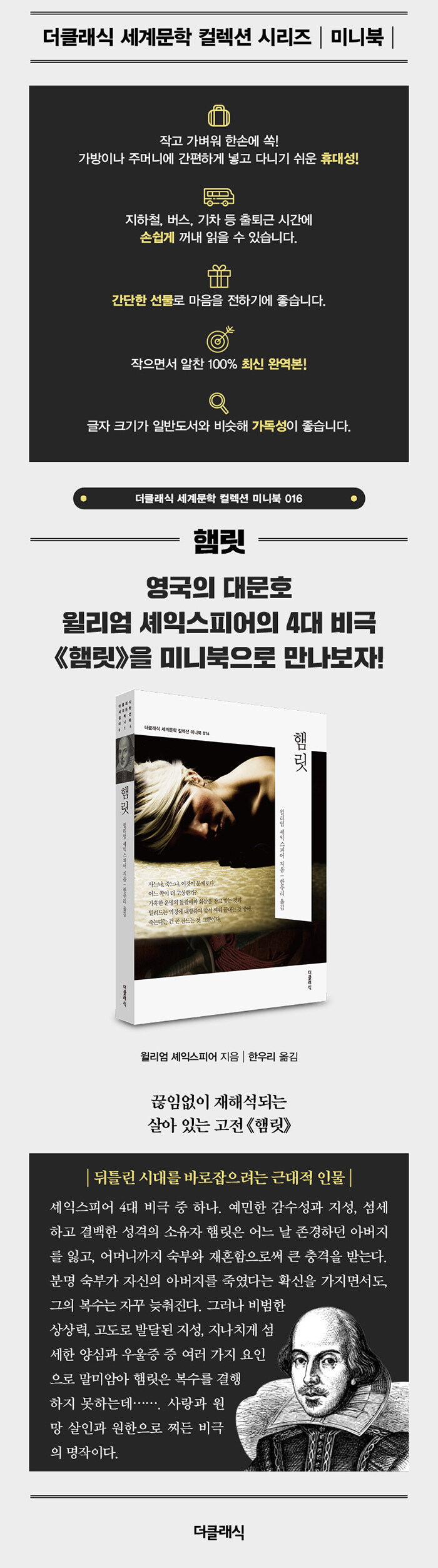 º¸Åë º¹¼ö ºñ±Ø ¡¶Çܸ´¡·Àº »ç»ö°ú ¿ìÀ¯ºÎ´ÜÀÇ ºñ±ØÀ̶ó°í ¸»ÇØÁø´Ù. ±×·¡¼ ¡®Çܸ´¡¯À» ¿ìÀ¯ºÎ´ÜÇÑ Àι°ÀÇ ÀüÇüÀ̶ó°í ÁÖÀåÇÏ´Â »ç¶÷µéµµ ÀÖ´Ù. ½ÉÁö¾î 19¼¼±â ºñÆò°¡ Àª¸®¾ö ÇØÁñ¸´(William Hazlitt)Àº Çܸ´À» ÇൿÀÌ ¸¶ºñµÈ ¡®Ã¶ÇÐÀû »ç»öÀÇ ¿ÕÀÚ¡¯¶ó ÆòÇϱ⵵ Çß´Ù. ±×·¯³ª ÀÌ´Â ÀÛǰ¿¡ ´ëÇÑ ¿Ã¹Ù¸¥ ÀÌÇØ°¡ ¾Æ´Ï´Ù. Çܸ´Àº ¿ìÀ¯ºÎ´ÜÇÑ Àι°ÀÇ ÀüÇüÀÌ ¾Æ´Ï¶ó ¿ÀÈ÷·Á ÇÕ¸®ÀûÀ¸·Î »ç°íÇÏ°í ÆÇ´ÜÇÏ´Â ±Ù´ëÀû Àι°À̾ú´Ù. Çܸ´ÀÌ Á÷Á¢ÀûÀÎ º¹¼ö¸¦ °è¼ÓÇØ¼ µÚ·Î ¹Ì·é °ÍÀº ±×°¡ ¡®º¹¼ö¡¯¶ó´Â ¹®Á¦¸¦ ±×¸® ´Ü¼øÇÏ°Ô º¸Áö ¾Ê¾Ò±â ¶§¹®ÀÌ´Ù. ´ç½Ã µ§¸¶Å©´Â Áß½ÉÀÇ Áú¼°¡ ºØ±«µÇ°í ¹«³ÊÁø »óÅ¿´´Ù. ÀÌ´Â ÀÛǰ¿¡¼ ¾Æ¹öÁö¸¦ Á×ÀÎ ¼÷ºÎ, ¼÷ºÎ¿Í °áÈ¥ÇÑ ¾î¸Ó´Ï, ±×¸®ÇÏ¿© ¹«³ÊÁø Ä£Á· °£ÀÇ ±¸º°(»ïÃÌÀÌÀÚ ¾Æ¹öÁö, ¾î¸Ó´ÏÀÌÀÚ ¼÷¸ð, Á¶Ä«ÀÌÀÚ ¾Æµé)·Î µå·¯³ª°í ÀÖ´Ù.