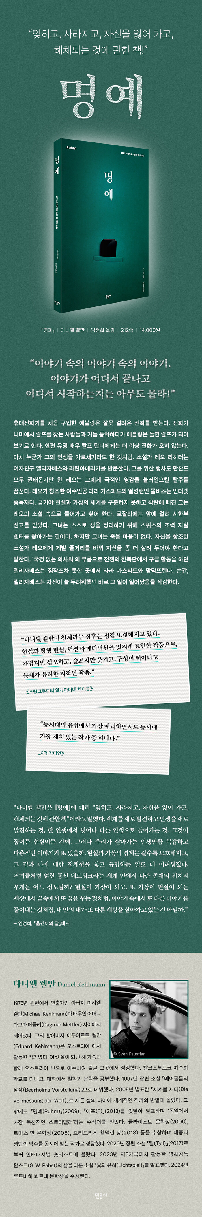 ´Ù´Ï¿¤ Ä̸¸ÀÇ ¡º¸í¿¹¡»´Â ¸¶Ä¡ ¸¶Æ®·á½ÃÄ« ÀÎÇüó·³, À̾߱⠼ӿ¡ ¶Ç ´Ù¸¥ À̾߱Ⱑ ¼û¾î ÀÖ´Ù. °¢°¢ÀÇ ÀÌ¾ß±â ¼Ó ÁÖÀΰøµéÀº ÇÑ À̾߱⿡¼ ÁÖÀΰøÀ» ¸Ã¾Ò´Ù°¡ ´Ù¸¥ À̾߱⿡¼´Â Á¶¿¬À̳ª ½Ç·ç¿§À¸·Î¸¸ µîÀåÇϰí, ¸î ÂÊ ³Ñ¾î°¡¸é Çö½ÇÀÌ °¡»óÀ¸·Î, °¡»óÀÇ ¼¼°è´Â Çö½Ç·Î ÆÇ¸í³ª±âµµ ÇÑ´Ù. ÀϺΠÀ̾߱â¿Í µîÀåÀι°Àº Çö½Ç ¶Ç´Â °¡»óÀÇ ³í¸®ÀûÀÎ °æ°è¸¦ ħ¹üÇϱ⵵ ÇÑ´Ù. ¡¸·ÎÀ߸®¿¡°¡ Á×À¸·¯ °¡´Ù¡¹ ¿¡¼´Â ³ëºÎÀÎ ·ÎÀ߸®¿¡°¡ Á×À½À» ¸ÂÀÌÇÏ·¯ °¡´Â ±æ¿¡ ÀÚ½ÅÀ» âÁ¶ÇØ ³½ ·¹¿À¿Í ¾ðÀïÀ» ¹úÀÌ¸ç µ¶ÀÚ¸¦ È¥¶õ¿¡ ºü¶ß¸°´Ù. ·¹¿À´Â ¿¤¸®ÀÚº£½º¸¦ ¸ðµ¨·Î ¶ó¶ó °¡½ºÆÄµå¶ó´Â Àι°À» ¸¸µé¾î ³½ µÚ ¿¤¸®ÀÚº£½º¿Í ¶ó¶ó °¡½ºÆÄµå¸¦ ¼·Î ¸Â´Ú¶ß¸®°Ô ÇÑ´Ù.(µÎ ÆíÀÇ ¡¸À§Çè ¼Ó¿¡¼¡¹) ¡¸Åä·Ð¿¡ ±Û ¿Ã¸®±â¡¹¿¡¼´Â ¸ôºñÃ÷°¡ ¶ó¶ó °¡½ºÆÄµå¸¦ ¸÷½Ã ÁÁ¾ÆÇÑ ³ª¸ÓÁö Á÷Á¢ ¸¸³ª±â À§ÇØ ·¹¿ÀÀÇ ¼Ò¼³ ¼ÓÀ¸·Î µé¾î°¡°í ½Í¾î ÇÑ´Ù. ¾ÆÈ© °³ÀÇ ¿¡ÇǼҵåµéÀº ÆÛÁñ Á¶°¢Ã³·³ ¼·Î ¸ÂÃçÁö°í, ²¿¸®¿¡ ²¿¸®¸¦ ¹°µí À̾îÁö¸ç ¿¬°áµÈ´Ù. ³¡°ú ½ÃÀÛÀº ¸ðÈ£ÇÏ°Ô Èå·ÁÁö°í À̾߱âµé »çÀÌÀÇ °æ°è¸¦ ³ª´ ¼ö ¾ø°Ô µÈ´Ù. ¡°¸¶Ä¡ ÅØ½ºÆ®¶ó´Â ¸ö¶×À̸¦ ¾ô¾î¸Å´Â ½Å°æÀÌ ¡®¾ÆÈ© À̾߱⡯ À§·Î »¸¾î ÀÖ´Â °Í °°´Ù. °¢°¢ÀÇ ¿¬°áÀ» ÇØµ¶ÇÏ´Â °ÍÀÌ ¡º¸í¿¹¡»¸¦ Àд °¡Àå Å« Áñ°Å¿ò¡±(¡¶ÇÁ¶ûũǪ¸£ÅÍ ·éÆ®»þ¿ì¡·)ÀÌ´Ù. ´Ù´Ï¿¤ Ä̸¸Àº ÇÑ ÀÎÅͺ信¼ ¡°ÀÌ ÀÛǰÀÇ Ç㱸´Â Æò¸éÀûÀÌÁö ¾Ê°í ´ÙÃþÀûÀ̱⠶§¹®¿¡, ±»ÀÌ À̸¦ ÀǽÄÇÏÁö ¾Ê°í Àо ÁÁÁö¸¸, ÀüüÀûÀÎ ¿¬°ü¼ºÀ» ¿°µÎ¿¡ µÎ°í Àд´ٸé ÈξÀ ´õ Àç¹ÌÀÖ´Â µ¶¼°¡ µÉ °Í¡±À̶ó°í ¹àÇû´Ù.