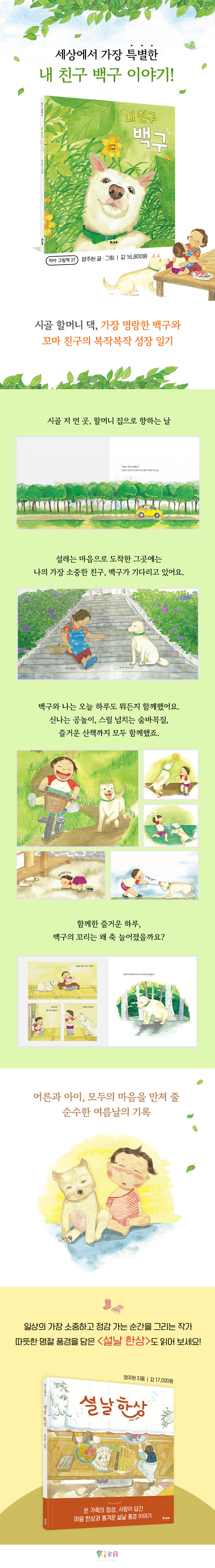 ¶ß°Å¿î ÅÂ¾ç ¾Æ·¡ ºê·ÎÄݸ®°¡ 'º¸±Ûº¸±Û' ¼Ò¸®¸¦ ³»°í, °³±¸¸®°¡ '°³±¼°³±¼' ³ë·¡ÇÏ´Â ÇÒ¸Ó´Ï ´ì °¡´Â ±æÀº ¾ÆÀÌ¿¡°Ô ¼³·½ ±× ÀÚüÀÔ´Ï´Ù. ¸¶´çÀÇ °í½½°í½½ÇÑ È볿»õ, ¹ç¿¡¼ ³ª´Â ³ª¹° ¹ÝÂù ³¿»õ, °¡¸¶¼ÜÀÇ °í¼ÒÇÑ ³¿»õ°¡ ¾ÆÀÌÀÇ Èİ¢À» »ç·ÎÀâ´Â °÷. ±×°÷¿¡´Â ¾ÆÀ̸¦ º¸¸é ²¿¸®¸¦ ÆÈ¶ûÆÈ¶û Èçµé¸ç ´Þ·Á¿À´Â °¡Àå ¼ÒÁßÇÑ Ä£±¸, ¹é±¸°¡ ÀÖ½À´Ï´Ù. ÀÌ Ã¥Àº ¿À°¨À» ÀÚ±ØÇÏ´Â »ý»ýÇÑ ¹¦»ç¸¦ ÅëÇØ µ¶ÀÚµéÀ» °¡Àå ¼ø¼öÇß´ø ½ÃÀýÀÇ Ãß¾ï ¼ÓÀ¸·Î À̲ø¾î °©´Ï´Ù. ÀÌ ±×¸²Ã¥Àº ³× »ì ¿©¸§¹æÇÐ, ½ÃÀå¿¡¼ '²¤²¤²¤²¤' ¢´Â °¾ÆÁö¸¦ ¸¸³ª ¿ï°íºÒ°í ¶¼¸¦ ¾´ ³¡¿¡ ÇÒ¸Ó´Ï ´ìÀ¸·Î µ¥·Á¿Â ¼ø°£ºÎÅÍ ½ÃÀ۵˴ϴÙ. ¹ã»õµµ·Ï '³©³©' ¿ï´ø ¾Æ±â ¹é±¸´Â ¾î´À»õ »çÀÚó·³ ´Æ¸§ÇÏ°Ô ÀÚ¶ó ¾ÆÀÌ¿Í ÇÔ²² ´Þ¸®±â ½ÃÇÕ, °ø³îÀÌ, Àâ±â³îÀ̸¦ Áñ±â´Â µçµçÇÑ Ä£±¸°¡ µË´Ï´Ù. ¾ÆÀÌ¿¡°Ô´Â Ã¥ÀÓ°¨°ú ¿ìÁ¤ÀÇ ¼ÒÁßÇÔÀ», ¾î¸¥¿¡°Ô´Â ÇÔ²² ¼ºÀåÇÏ´Â °ü°èÀÇ ¾Æ¸§´Ù¿òÀ» µÇ»õ±â°Ô ÇÕ´Ï´Ù. ÀÌ Ã¥À» Àд ¾ÆÀ̵éÀº ¹é±¸¿ÍÀÇ ¸í¶ûÇÑ ³îÀÌ ¼Ó¿¡¼ Á¤¼Àû ¾ÈÁ¤°¨À» ´À³¢°í, ¾î¸¥µéÀº º¹ÀâÇÑ Àϻ󿡼 ¹þ¾î³ª µû¶æÇÑ °ø°¨°ú À§·Î¸¦ ¾òÀ» ¼ö ÀÖ½À´Ï´Ù.