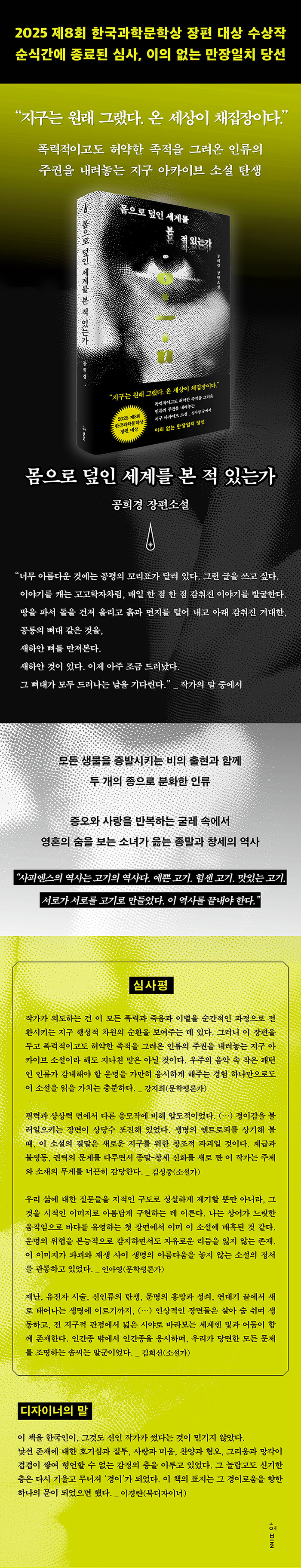 2025 Á¦8ȸ Çѱ¹°úÇй®Çлó ÀåÆí ´ë»óÀÛ, °øÈñ°æÀÇ ¡º¸öÀ¸·Î µ¤ÀÎ ¼¼°è¸¦ º» Àû Àִ°¡¡»°¡ Çãºí¿¡¼ Ãâ°£µÆ´Ù. Çѱ¹°úÇй®ÇлóÀº ±èÃÊ¿±, õ¼±¶õ, û¿¹ µî ÇöÀç Ȱ¹ßÈ÷ Ȱµ¿ÇÏ´Â SF ÀÛ°¡µéÀÇ Åº»ýÀ» ÇÔ²²ÇÏ¸ç ±¹³» ÃÖ´ëÀÇ SF ÀÛ°¡ µî¿ë¹® ¿ªÇÒÀ» ÇØ¿Ô´Ù. ƯÈ÷ ¿ÃÇØºÎÅÍ´Â ÀÀ¸ð ÀÚ°ÝÀ» ½ÅÀÎ ÀÛ°¡¿¡¼ ±â¼º ÀÛ°¡±îÁö È®´ëÇÏ¸ç °ø¸ðÀÇ ÆøÀ» È®ÀåÇß°í, ±× °á°ú Àü³âº¸´Ù ÀÀ¸ðÀÛÀÌ ´Ã¾î³ °¡¿îµ¥, ½ÅÀÎ ÀÛ°¡ °øÈñ°æÀÌ ±è¼ºÁß?±èÈñ¼± ¼Ò¼³°¡¿Í °ÁöÈñ?Àξƿµ ¹®ÇÐÆò·Ð°¡ÀÇ ²Ä²ÄÇÑ ½É»ç¸¦ °ÅÃÄ µî´ÜÀÇ ¿µ¿¹¸¦ ¾È¾Ò´Ù.