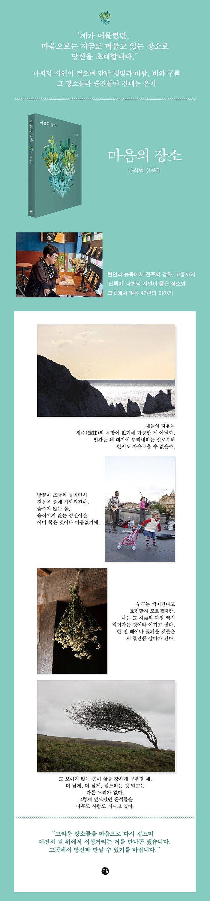 ¡º¿¹¼úÀÇ ÁÖ¸§µé¡» ÀÌÈÄ 5³â ¸¸¿¡ Æì³»´Â »ê¹®Áý ¡º¸¶À½ÀÇ Àå¼Ò¡»´Â ¡ºÇÑ °ÉÀ½¾¿ °É¾î¼ °Å±â µµÂøÇÏ·Á³×¡»¸¦ ÀüüÀûÀ¸·Î ¼Õº¸°í »õ·Î¿î ±ÛÀ» ´õÇÑ °³Á¤Áõº¸ÆÇÀÌ´Ù. ½ÃÀÎÀº ¡º¸¶À½ÀÇ Àå¼Ò¡»¸¦ ÁغñÇÏ¸ç ¡°¿©ÀüÈ÷ ±æ À§¿¡¼ ¼¼º°Å¸®´Â Àú¡± ÀÚ½ÅÀ» ¸¸³µ´Ù°í °í¹éÇÑ´Ù. Çѹø ǰÀº Àå¸éÀº ½Ã°£ÀÌ Áö³ªµµ ¹Ù·¡Áö ¾Ê°í ¿µ¿øÈ÷ °¡½¿¼Ó¿¡¼ ºû³´Ù. ¡º¸¶À½ÀÇ Àå¼Ò¡»´Â ³ªÈñ´ö ½ÃÀÎÀÌ ¸¶À½À¸·Î ¿À·¡ ¸Ó¹°·¯¿Â Àå¼ÒµéÀ» µû¶ó °ÉÀ¸¸ç ½á³»·Á°£ »ê¹®ÁýÀÌ´Ù.