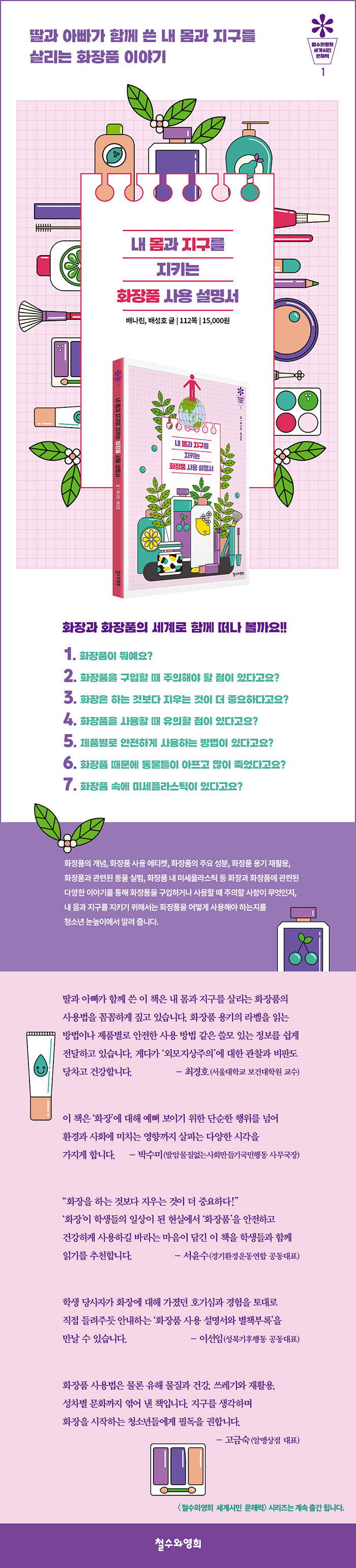 ÀÌ Ã¥Àº ÈÀåǰÀ» ¿Ã¹Ù¸£°Ô »ç¿ëÇÏ´Â ¹æ¹ýÀº ¹°·Ð À¯ÇØ ¹°Áú°ú °Ç°, ÈÀåǰ ¾²·¹±â¿Í ÀçȰ¿ë±îÁö ´Ù·ç¾î û¼Ò³âµé¿¡°Ô ÈÀå°ú ÈÀåǰÀÌ Áö±¸ »ýŰè¿Í »çȸ Àüü¿¡ ¹ÌÄ¡´Â ¿µÇâ±îÁö ÀÚ¿¬½º·´°Ô ¾Ë·ÁÁØ´Ù.